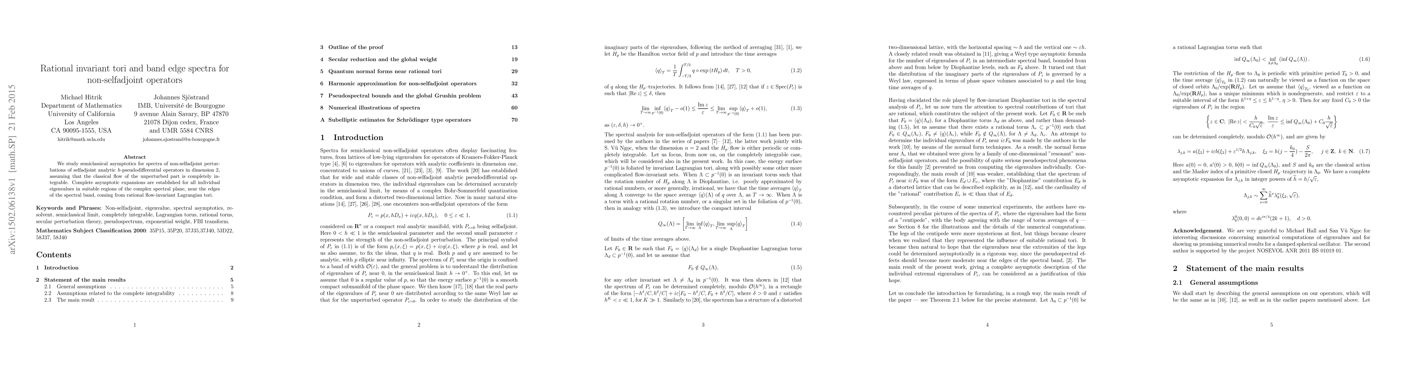 This paper investigates the semiclassical asymptotics of spectra for non-selfadjoint perturbations of selfadjoint analytic $h$-pseudodifferential operators in dimension 2, focusing on completely integrable classical flows. It provides complete asymptotic expansions for eigenvalues near the spectral band edges associated with rational flow-invariant Lagrangian tori.