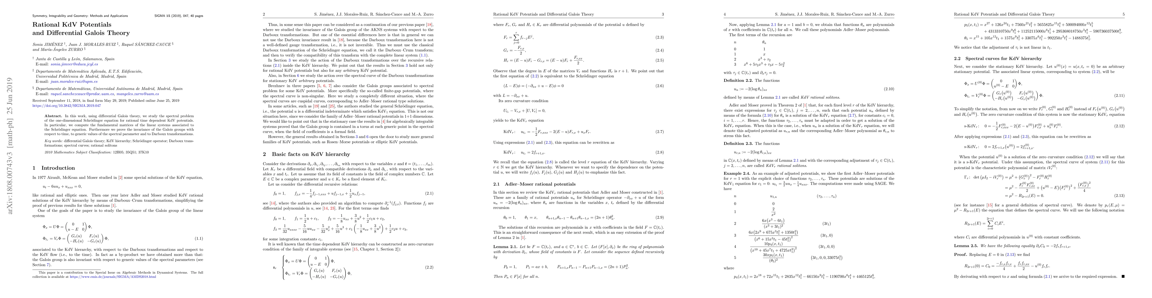 The research employs differential Galois theory to analyze the spectral problem of the one-dimensional Schrödinger equation for rational time-dependent KdV potentials, computing fundamental matrices of the associated linear systems.