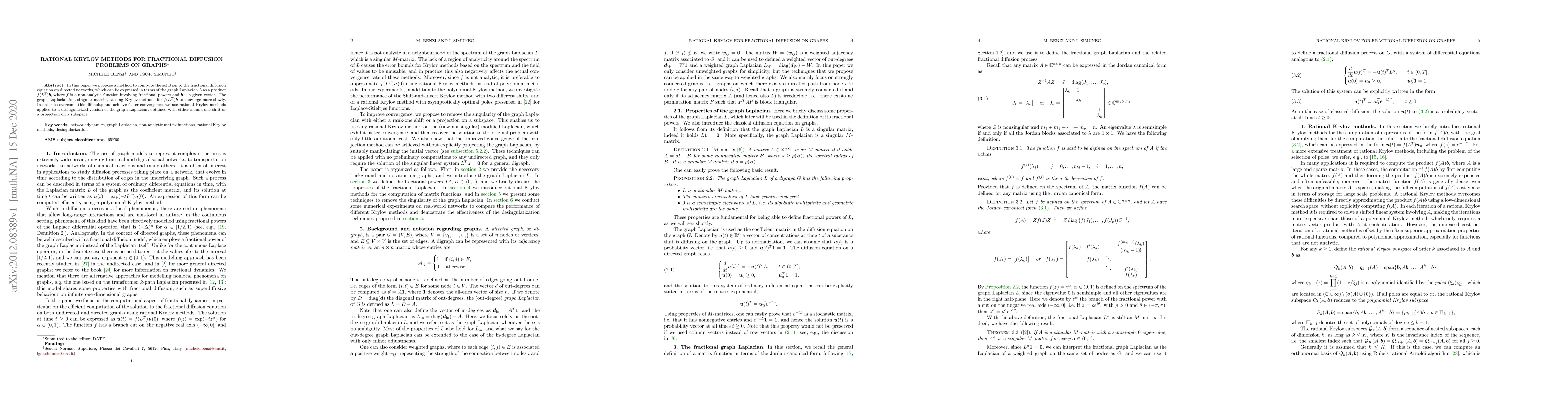 This paper introduces rational Krylov methods to solve fractional diffusion equations on directed networks, addressing the slow convergence of traditional Krylov methods due to the singular nature of the graph Laplacian. The proposed approach uses a desingularized version of the Laplacian to achieve faster convergence.