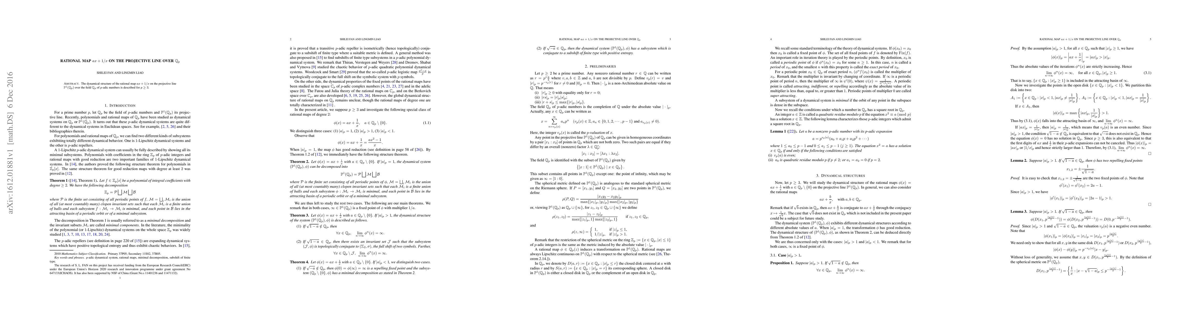 The dynamical structure of the rational map $ax+1/x$ on the projective line $\P$ over the field $\mathbb{Q}\_p$ of $p$-adic numbers is described for $p\geq 3$.