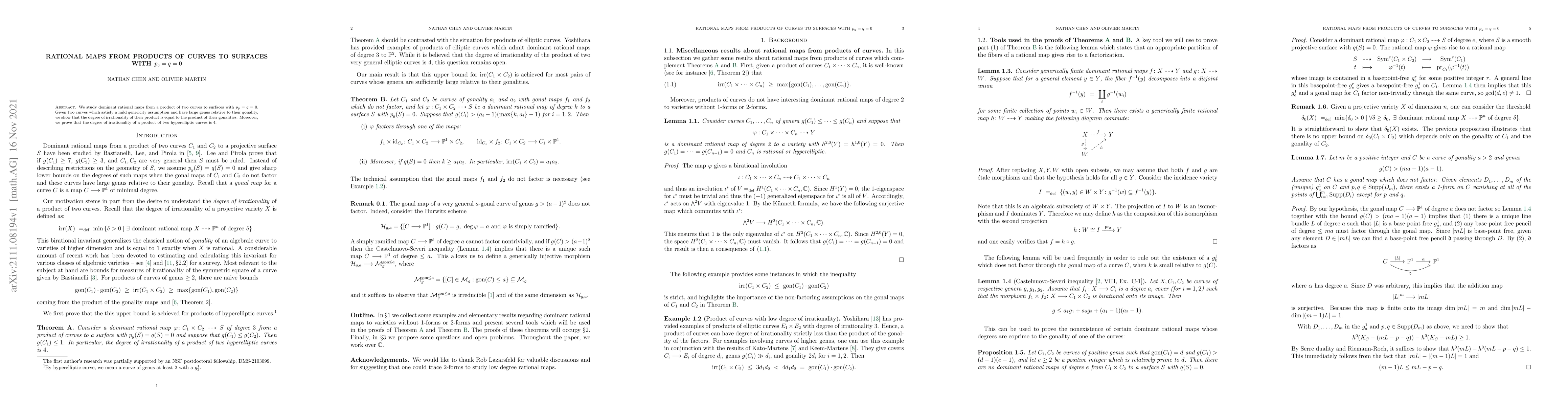 This paper investigates dominant rational maps from products of two curves to surfaces with $p_g = q = 0$, proving that the degree of irrationality for such products equals the product of the curves' gonalities. It specifically shows that the degree of irrationality for products of two hyperelliptic curves is 4.