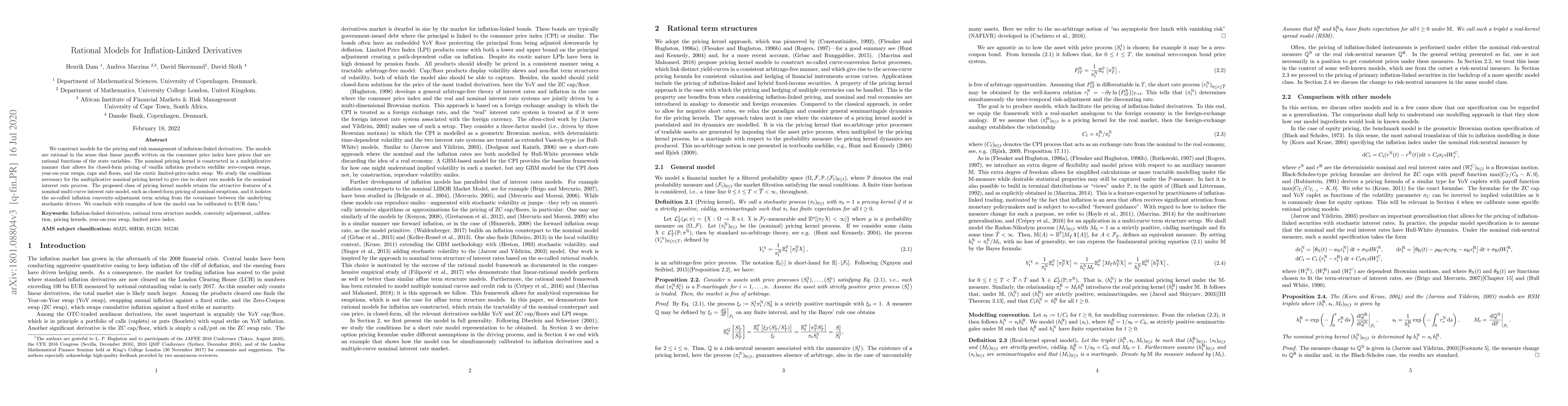 We construct models for the pricing and risk management of inflation-linked derivatives. The models are rational in the sense that linear payoffs written on the consumer price index have prices that are rational functions of the state variables. The nominal pricing kernel is constructed in a multiplicative manner that allows for closed-form pricing of vanilla inflation products suchlike zero-coupon swaps, year-on-year swaps, caps and floors, and the exotic limited-price-index swap. We study the conditions necessary for the multiplicative nominal pricing kernel to give rise to short rate models for the nominal interest rate process. The proposed class of pricing kernel models retains the attractive features of a nominal multi-curve interest rate model, such as closed-form pricing of nominal swaptions, and it isolates the so-called inflation convexity-adjustment term arising from the covariance between the underlying stochastic drivers. We conclude with examples of how the model can be calibrated to EUR data.