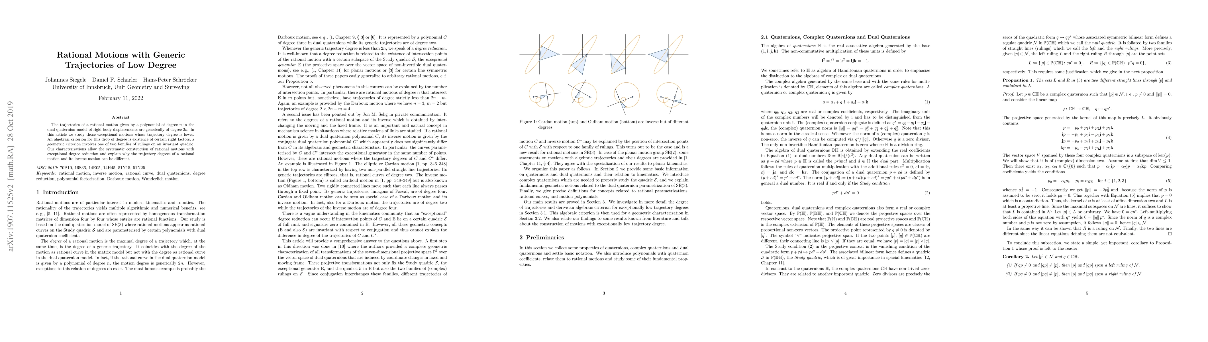 This paper investigates rational motions in the dual quaternion model where trajectories typically have degrees of 2n but can be lower under specific conditions. It provides algebraic and geometric criteria for these exceptional lower-degree trajectories, facilitating the construction of such motions and explaining the differing trajectory degrees between a motion and its inverse.