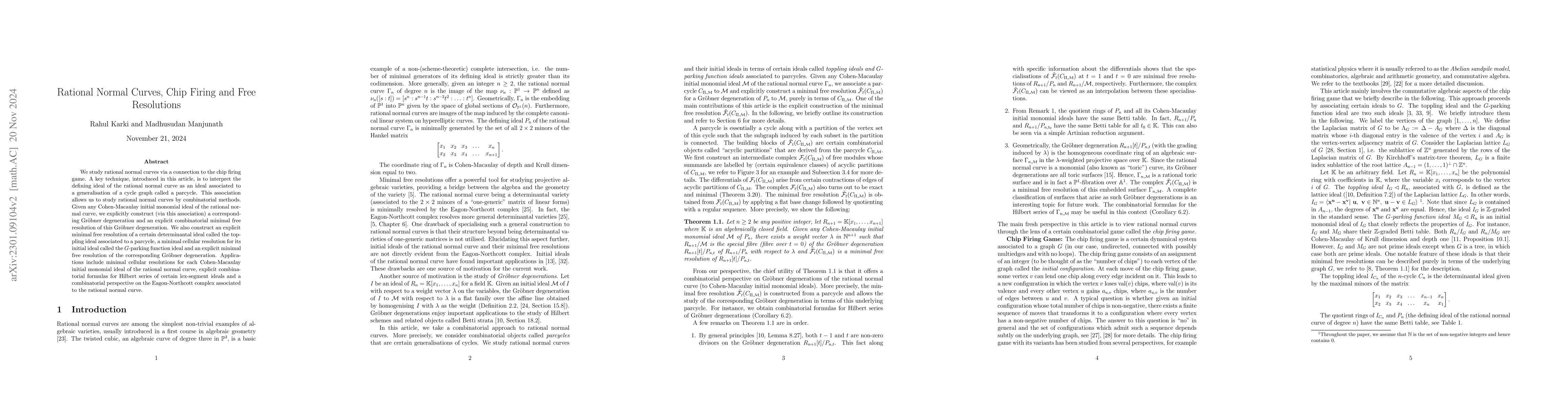 This paper explores the Betti strata of rational normal curves using chip firing game techniques, proving a comparison theorem and a connectivity theorem. It introduces a combinatorial method by interpreting the defining ideal of the curve as an ideal associated with a generalized cycle graph called a parcycle, yielding minimal free resolutions and cellular resolutions.
