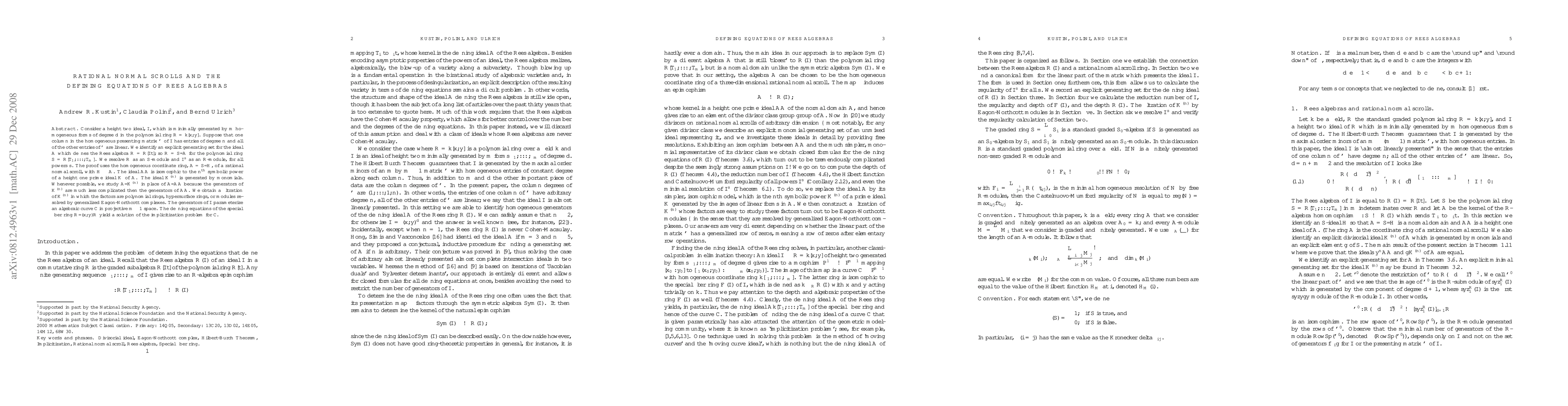 This paper identifies an explicit generating set for the ideal defining the Rees algebra of a height two ideal in a polynomial ring, resolving it as an $S$-module. It uses the homogeneous coordinate ring of a rational normal scroll and studies the $n^{\text{th}}$ symbolic power of a prime ideal, simplifying the analysis by examining $A/K^{(n)}$ instead of $A/\Cal AA$.