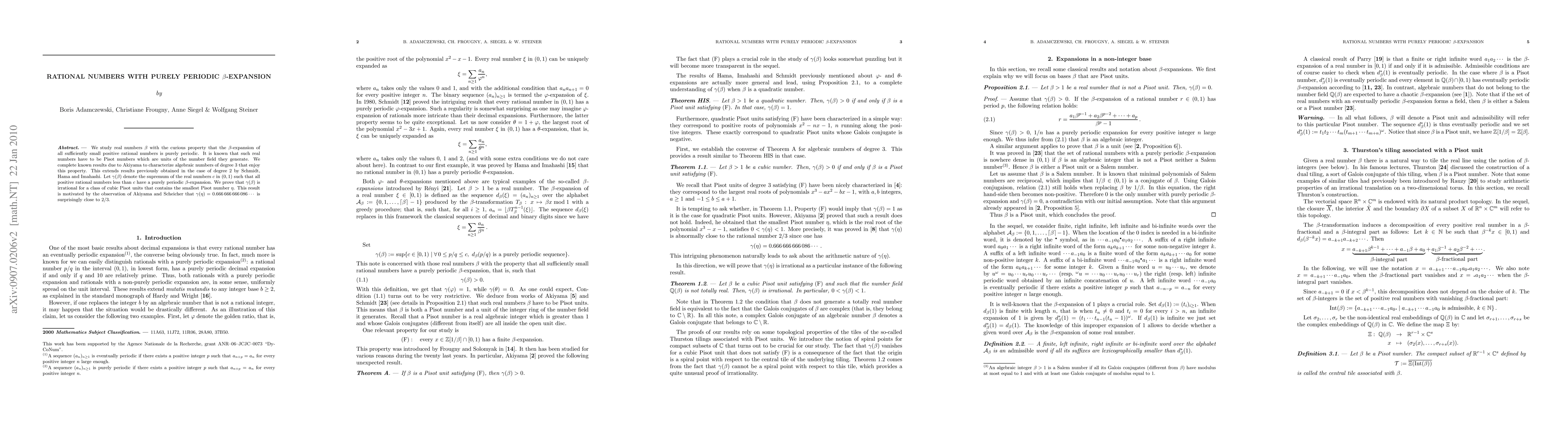 We study real numbers $\beta$ with the curious property that the $\beta$-expansion of all sufficiently small positive rational numbers is purely periodic. It is known that such real numbers have to be Pisot numbers which are units of the number field they generate. We complete known results due to Akiyama to characterize algebraic numbers of degree 3 that enjoy this property. This extends results previously obtained in the case of degree 2 by Schmidt, Hama and Imahashi. Let $\gamma(\beta)$ denote the supremum of the real numbers $c$ in $(0,1)$ such that all positive rational numbers less than $c$ have a purely periodic $\beta$-expansion. We prove that $\gamma(\beta)$ is irrational for a class of cubic Pisot units that contains the smallest Pisot number $\eta$. This result is motivated by the observation of Akiyama and Scheicher that $\gamma(\eta)=0.666 666 666 086 ...$ is surprisingly close to 2/3.