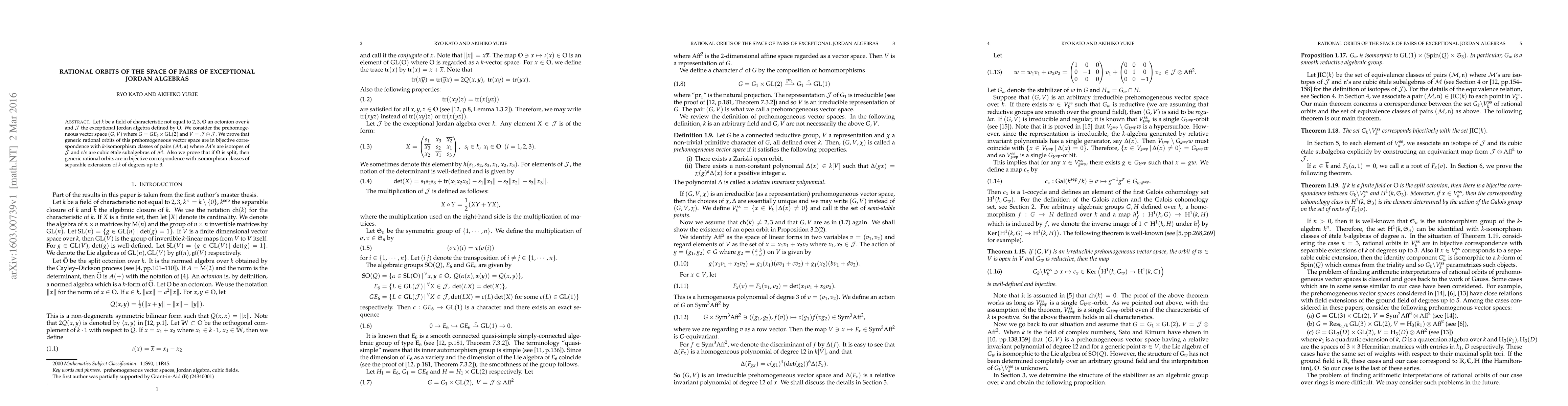 Let $k$ be a field of characteristic not equal to $2,3$, $\mathbb{O}$ an octonion over $k$ and $\mathcal{J}$ the exceptional Jordan algebra defined by $\mathbb{O}$. We consider the prehomogeneous vector space $(G,V)$ where $G=GE_6\times \mathrm{GL}(2)$ and $V=\mathcal{J}\oplus \mathcal{J}$. We prove that generic rational orbits of this prehomogeneous vector space are in bijective correspondence with $k$-isomorphism classes of pairs $(\mathcal{M},\mathfrak{n})$ where $\mathcal{M}$'s are isotopes of $\mathcal{J}$ and $\mathfrak{n}$'s are cubic \'etale subalgebras of $\mathcal{M}$. Also we prove that if $\mathbb{O}$ is split, then generic rational orbits are in bijective correspondence with isomorphism classes of separable extensions of $k$ of degrees up to $3$.