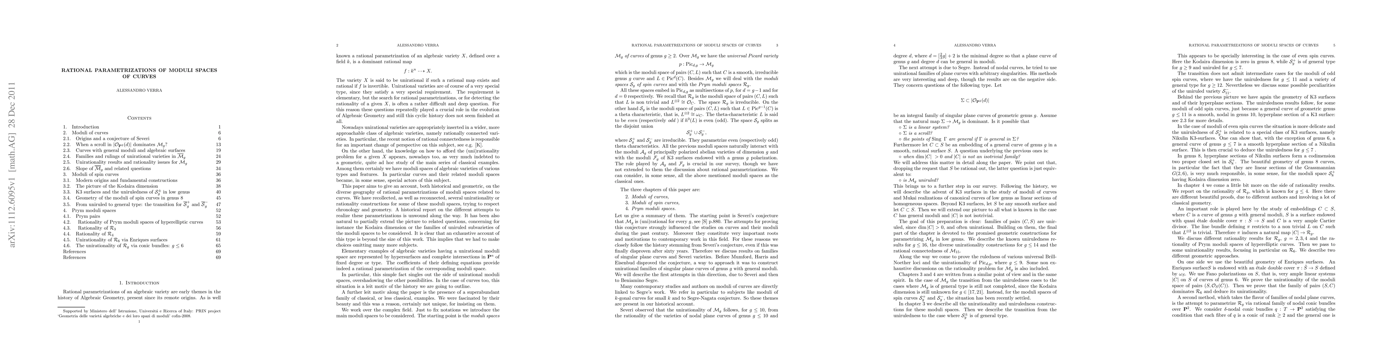 This paper provides a comprehensive overview of the historical and geometric aspects of rational parametrizations for moduli spaces associated with algebraic curves, contributing to the "Handbook of Moduli" series. It explores the diverse methods and developments in this field.