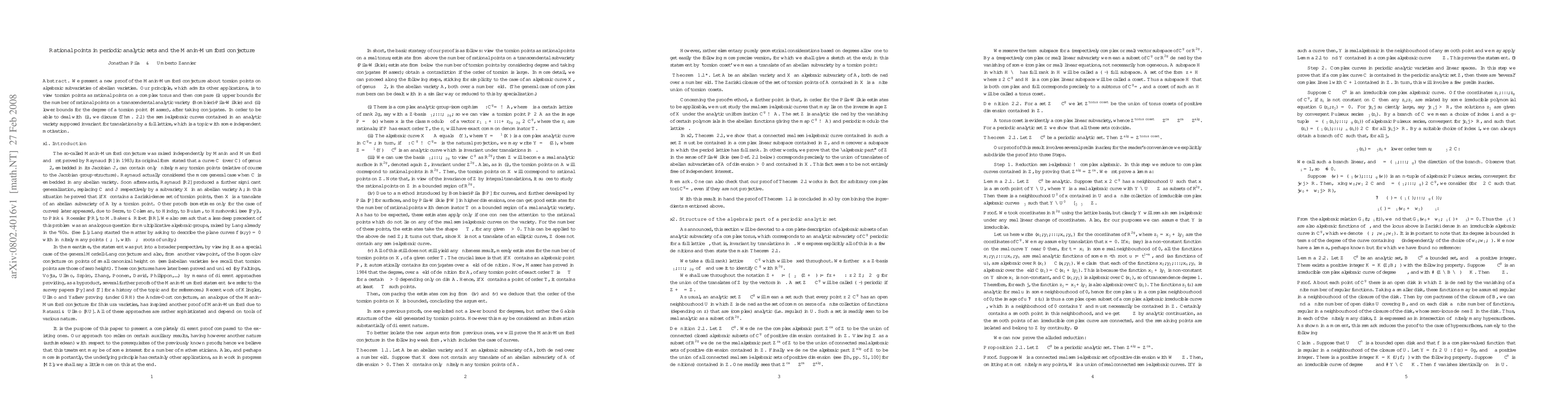 Researchers prove the Manin-Mumford conjecture by linking torsion points on abelian varieties to rational points on a complex torus, establishing upper bounds for rational points and lower bounds for the degree of torsion points.