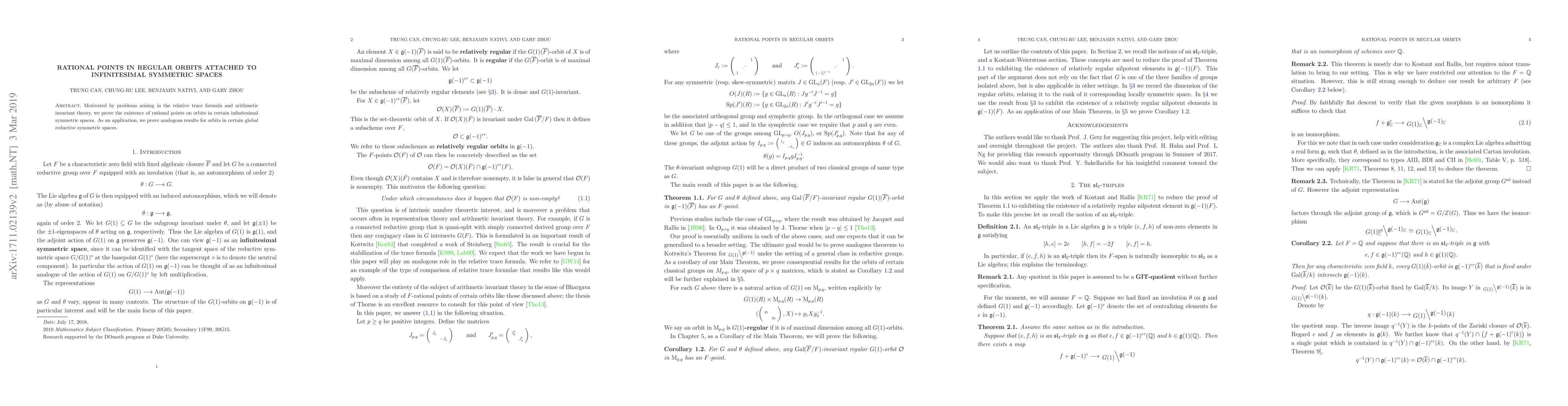 Motivated by problems arising in the relative trace formula and arithmetic invariant theory we prove the existence of rational points on orbits arising from certain infinitesimal symmetric spaces. As an application, we prove analogous results for orbits in certain global reductive symmetric spaces.