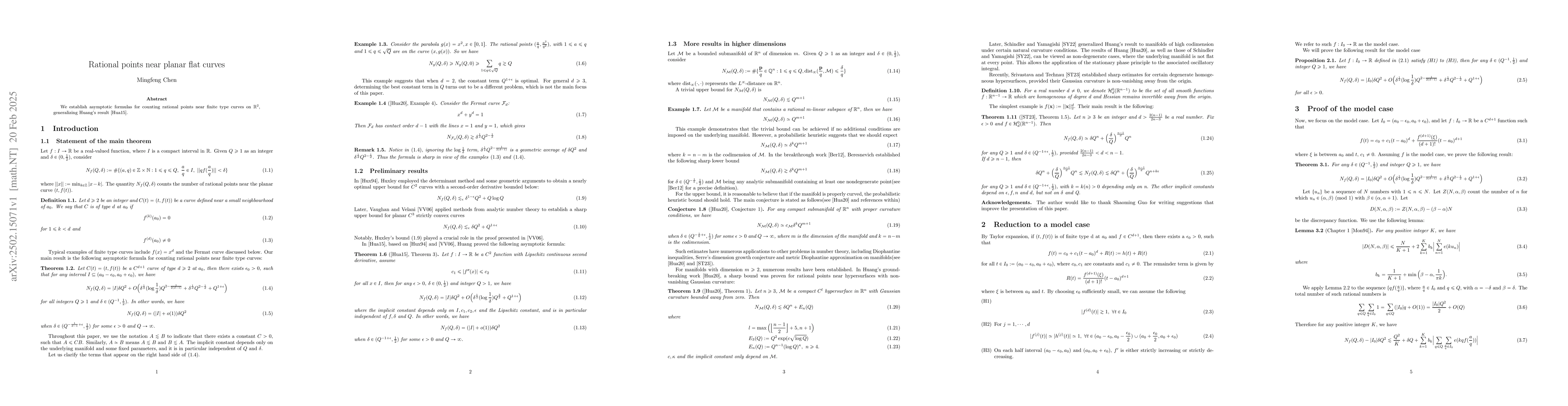 The paper presents a generalization of Huang's result, providing new asymptotic formulas for rational points near finite type curves.