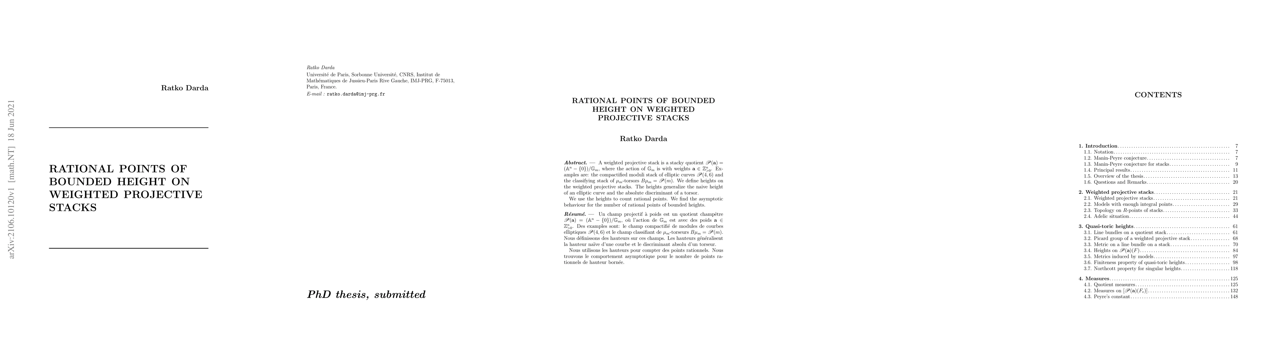This paper defines heights on weighted projective stacks and uses these to count rational points. It determines the asymptotic behavior for the number of rational points with bounded heights, generalizing concepts from elliptic curves and torsors.