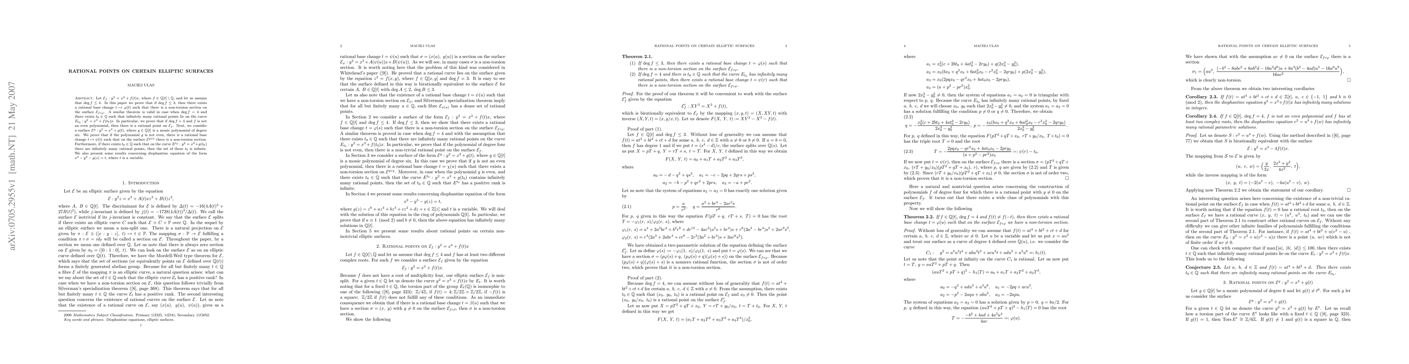 Researchers prove that certain elliptic surfaces with specific polynomial conditions admit rational base changes leading to non-torsion sections, enabling the existence of rational points.