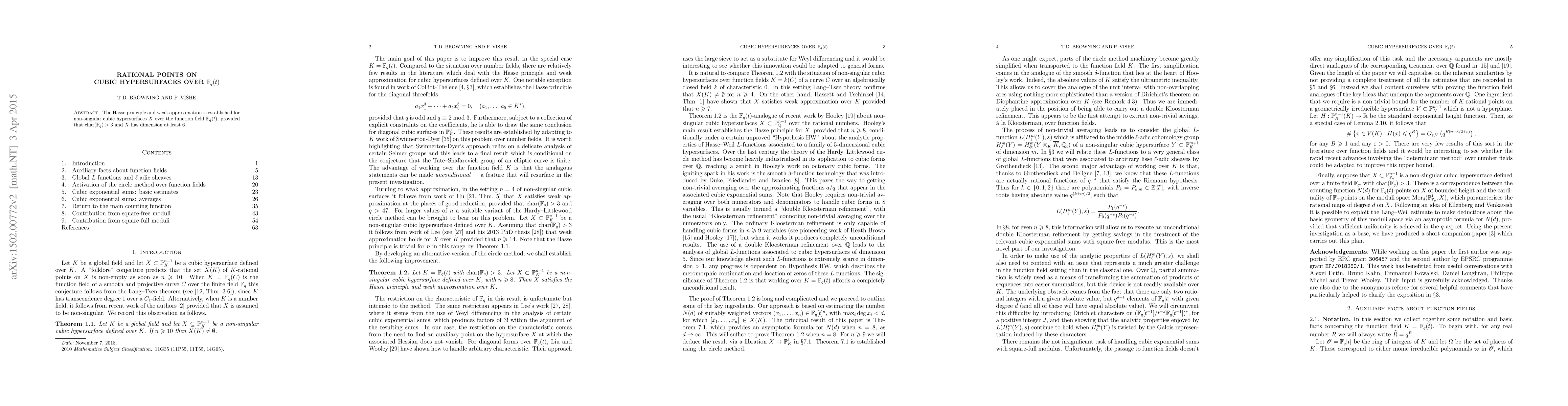 Summary: The paper establishes the Hasse principle and weak approximation for non-singular cubic hypersurfaces over the function field $\mathbb{F}_q(t)$, provided the dimension of the hypersurface is at least 6. This result applies to finite fields of characteristic greater than 3.