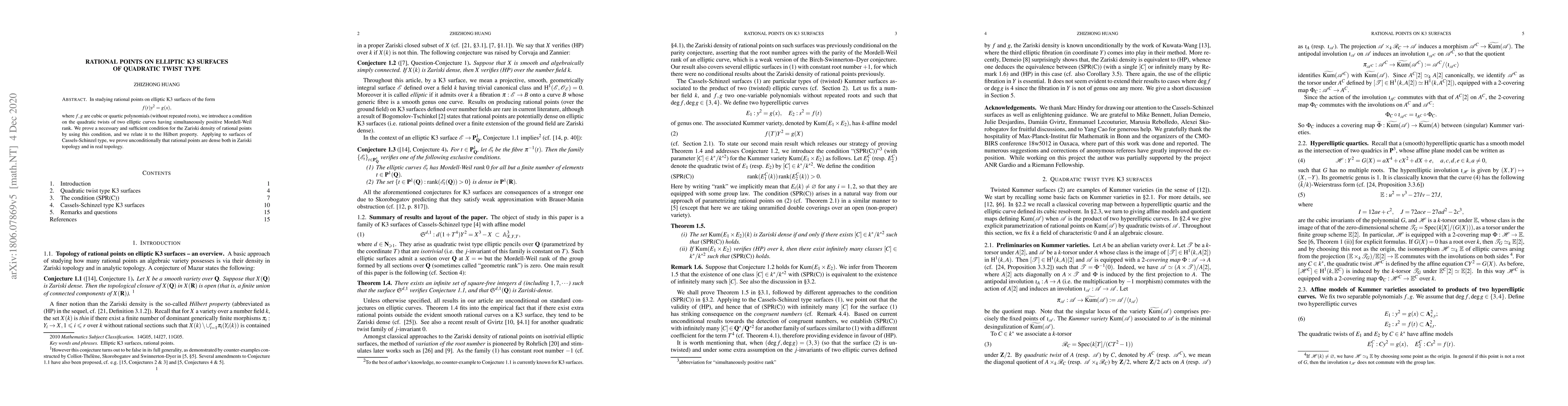 This paper investigates rational points on elliptic K3 surfaces defined by specific polynomial forms, introducing a condition on quadratic twists of elliptic curves. It establishes a necessary and sufficient condition for the Zariski density of these rational points and demonstrates that they are unconditionally dense in both Zariski and real topologies for surfaces of Cassels-Schinzel type.
