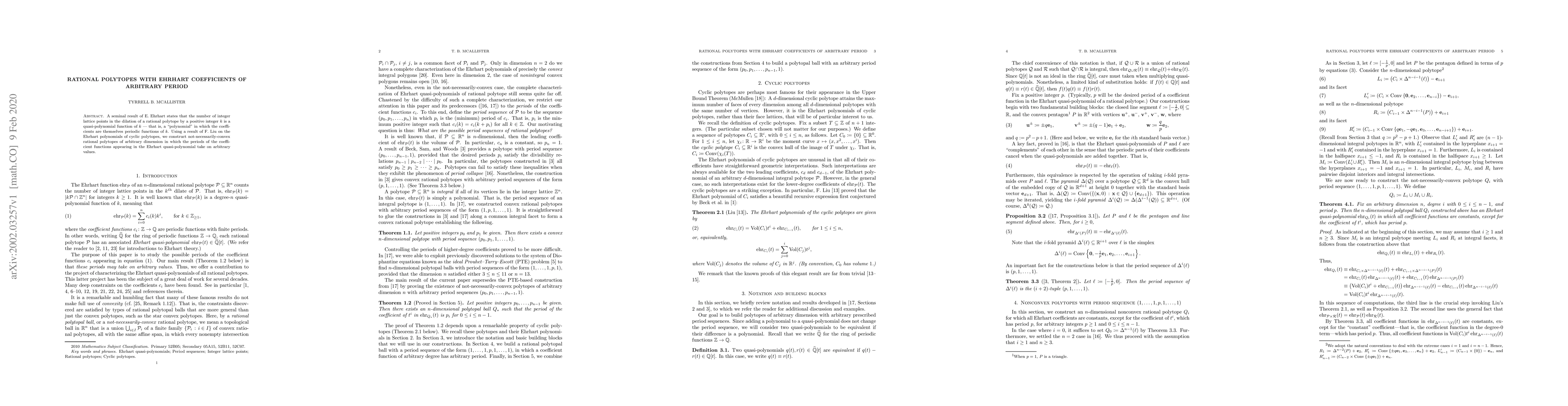 This paper constructs rational polytopes where the dilation's integer lattice points' count is a quasi-polynomial, and utilizes Liu's results to create polytopes with Ehrhart coefficients of any specified period. These can be of any dimension, not necessarily convex.