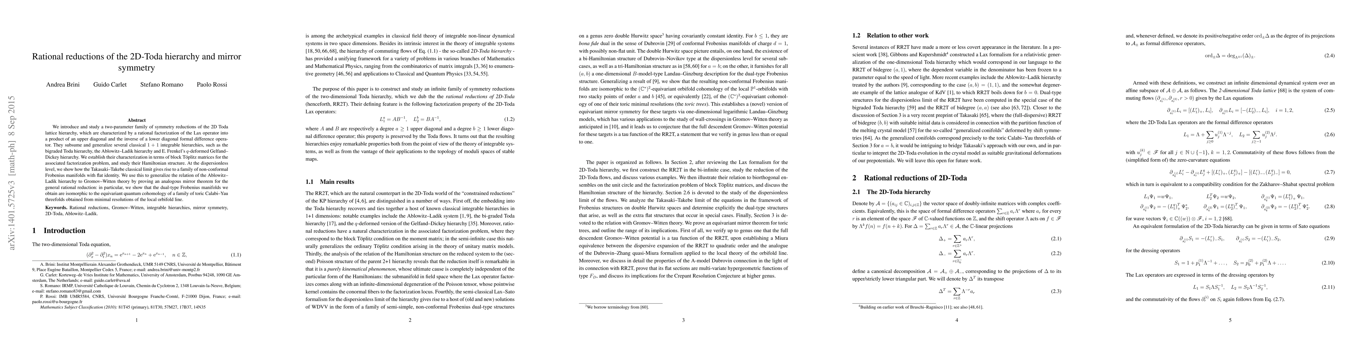 We introduce and study a two-parameter family of symmetry reductions of the two-dimensional Toda lattice hierarchy, which are characterized by a rational factorization of the Lax operator into a product of an upper diagonal and the inverse of a lower diagonal formal difference operator. They subsume and generalize several classical 1 + 1 integrable hierarchies, such as the bigraded Toda hierarchy, the Ablowitz-Ladik hierarchy and E. Frenkel's q-deformed Gelfand-Dickey hierarchy. We establish their characterization in terms of block Toeplitz matrices for the associated factorization problem, and study their Hamiltonian structure. At the dispersionless level, we show how the Takasaki-Takebe classical limit gives rise to a family of non-conformal Frobenius manifolds with flat identity. We use this to generalize the relation of the Ablowitz-Ladik hierarchy to Gromov-Witten theory by proving an analogous mirror theorem for rational reductions: in particular, we show that the dual-type Frobenius manifolds we obtain are isomorphic to the equivariant quantum cohomology of a family of toric Calabi-Yau threefolds obtained from minimal resolutions of the local orbifold line.