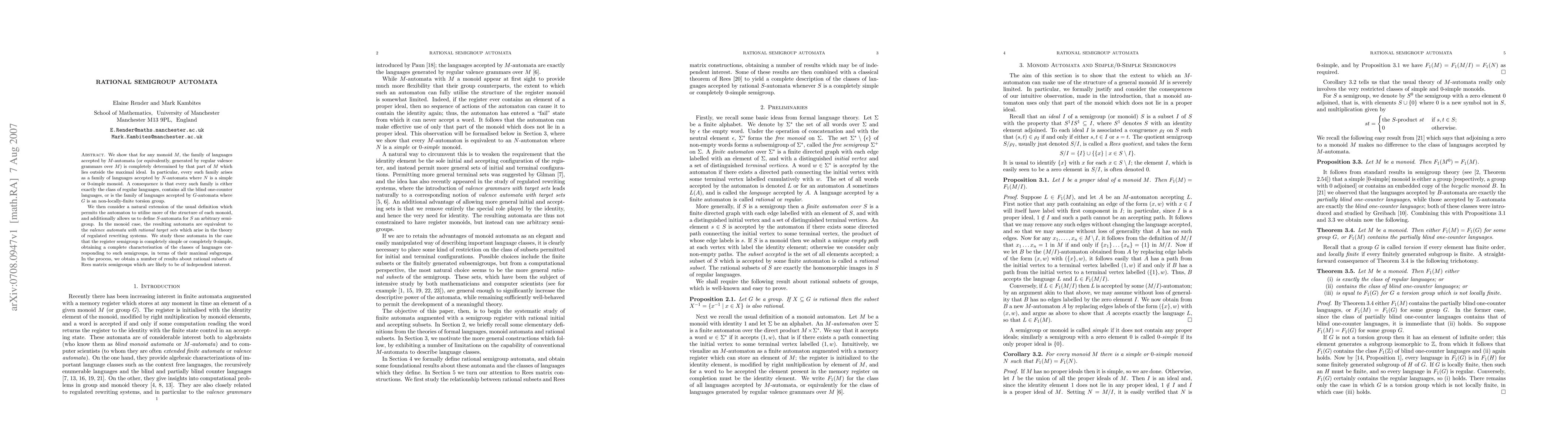 The paper introduces and analyzes rational semigroup automata, extending the concept of monoid automata and providing a detailed characterization of language classes for completely simple and completely 0-simple semigroups.