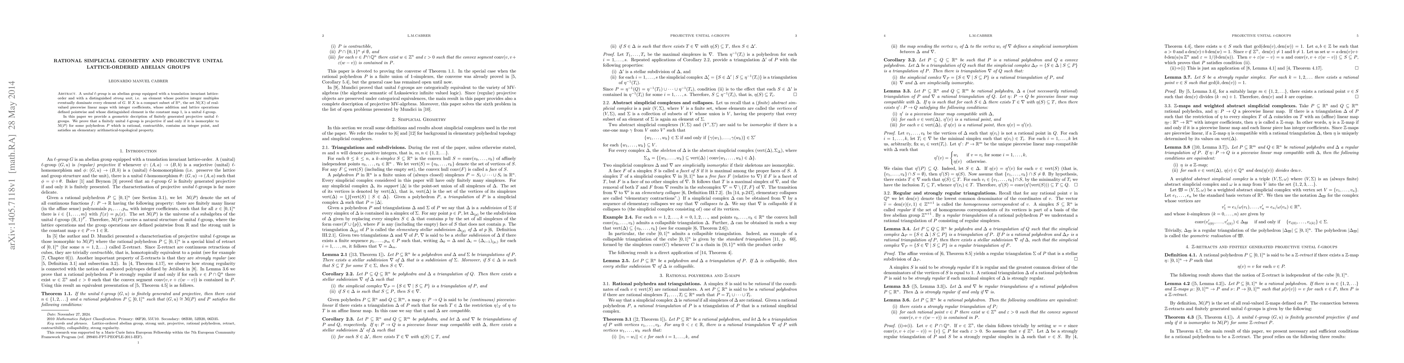 This paper explores the geometric structure of finitely generated projective unital lattice-ordered abelian groups, proving they are isomorphic to $M(P)$ for rational, contractible polyhedra $P$ containing an integer point, under certain arithmetical-topological conditions. The study employs rational simplicial geometry to describe these groups.