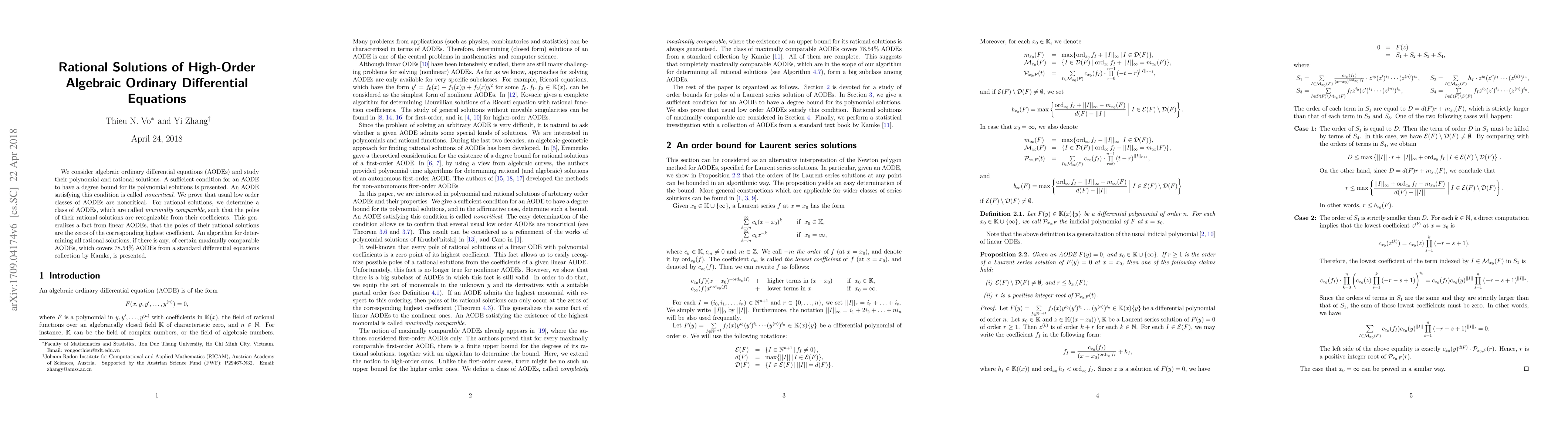 This paper investigates algebraic ordinary differential equations (AODEs) focusing on their polynomial and rational solutions. It establishes a sufficient condition for AODEs to have a bounded degree for polynomial solutions, termed noncritical AODEs, proving that usual low-order classes meet this criterion. Additionally, it introduces maximally comparable AODEs for rational solutions, where the poles are recognizable from coefficients, and presents an algorithm to determine these solutions for a significant subset of AODEs.