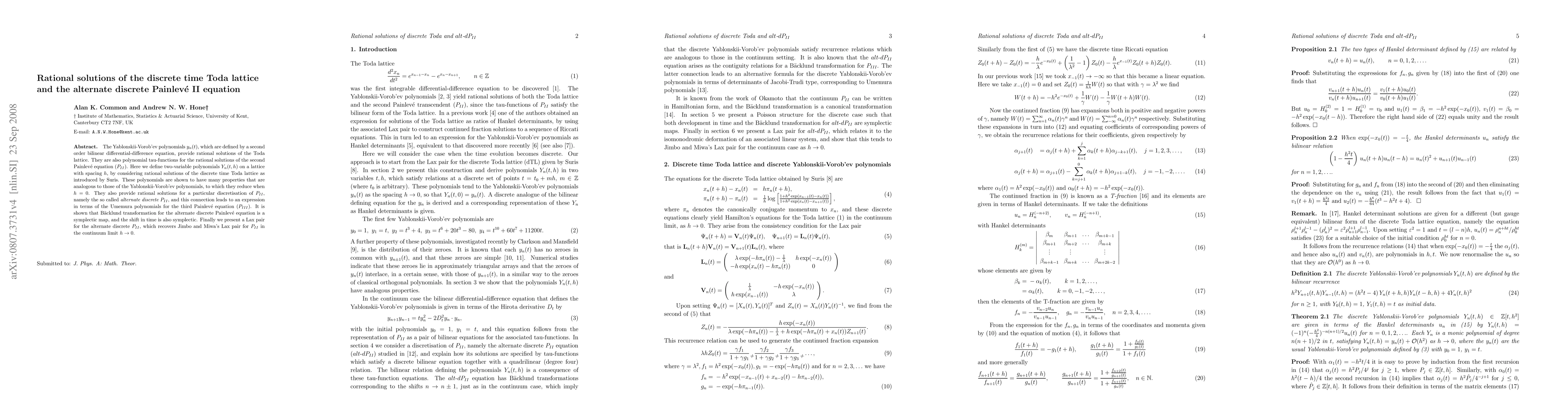 The Yablonskii-Vorob'ev polynomials $y_{n}(t)$, which are defined by a second order bilinear differential-difference equation, provide rational solutions of the Toda lattice. They are also polynomial tau-functions for the rational solutions of the second Painlev\'{e} equation ($P_{II}$). Here we define two-variable polynomials $Y_{n}(t,h)$ on a lattice with spacing $h$, by considering rational solutions of the discrete time Toda lattice as introduced by Suris. These polynomials are shown to have many properties that are analogous to those of the Yablonskii-Vorob'ev polynomials, to which they reduce when $h=0$. They also provide rational solutions for a particular discretisation of $P_{II}$, namely the so called {\it alternate discrete} $P_{II}$, and this connection leads to an expression in terms of the Umemura polynomials for the third Painlev\'{e} equation ($P_{III}$). It is shown that B\"{a}cklund transformation for the alternate discrete Painlev\'{e} equation is a symplectic map, and the shift in time is also symplectic. Finally we present a Lax pair for the alternate discrete $P_{II}$, which recovers Jimbo and Miwa's Lax pair for $P_{II}$ in the continuum limit $h\to 0$.
