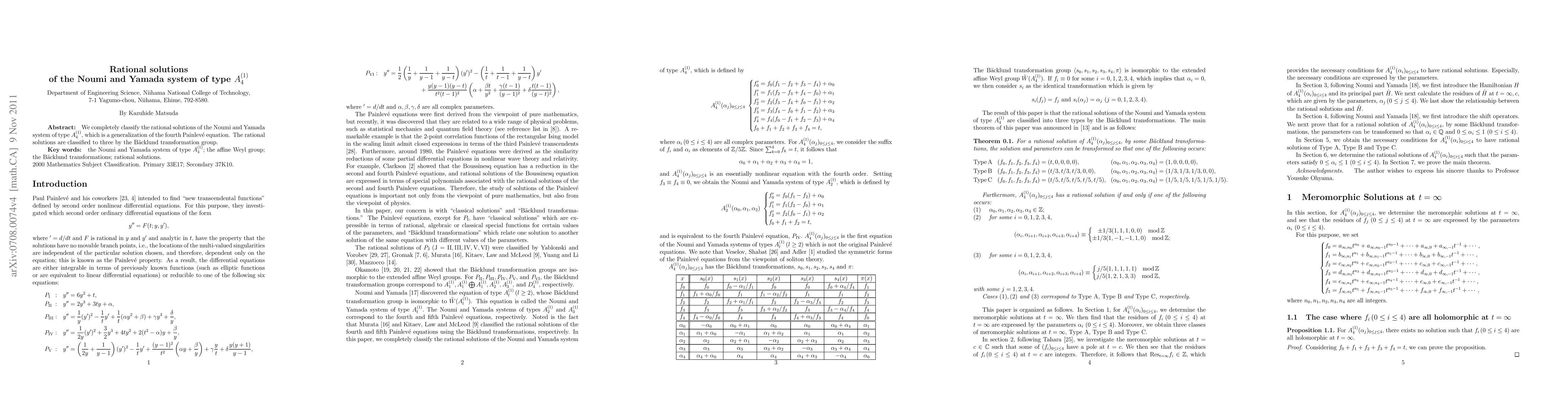 In this paper, we completely classify the raional solutions of the Noumi and Yamada system of type A_4^{(1)}, which is a generalization of the forth Painlev\'e equation. The rational solutions are classified to three types by the B\"acklund transformation group.