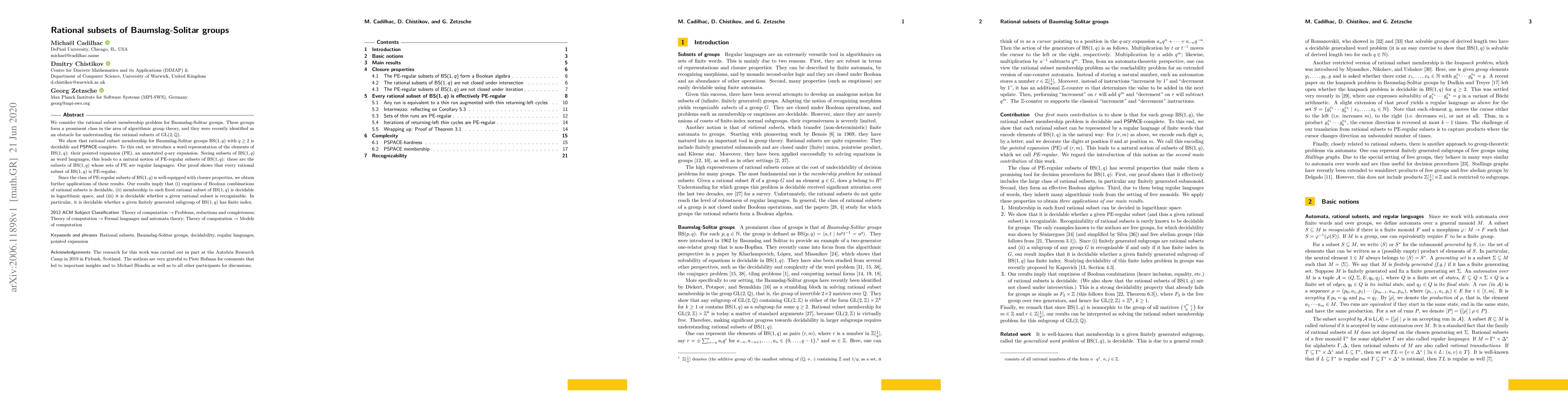 We consider the rational subset membership problem for Baumslag-Solitar groups. These groups form a prominent class in the area of algorithmic group theory, and they were recently identified as an obstacle for understanding the rational subsets of $\text{GL}(2,\mathbb{Q})$. We show that rational subset membership for Baumslag-Solitar groups $\text{BS}(1,q)$ with $q\ge 2$ is decidable and PSPACE-complete. To this end, we introduce a word representation of the elements of $\text{BS}(1,q)$: their pointed expansion (PE), an annotated $q$-ary expansion. Seeing subsets of $\text{BS}(1,q)$ as word languages, this leads to a natural notion of PE-regular subsets of $\text{BS}(1, q)$: these are the subsets of $\text{BS}(1,q)$ whose sets of PE are regular languages. Our proof shows that every rational subset of $\text{BS}(1,q)$ is PE-regular. Since the class of PE-regular subsets of $\text{BS}(1,q)$ is well-equipped with closure properties, we obtain further applications of these results. Our results imply that (i) emptiness of Boolean combinations of rational subsets is decidable, (ii) membership to each fixed rational subset of $\text{BS}(1,q)$ is decidable in logarithmic space, and (iii) it is decidable whether a given rational subset is recognizable. In particular, it is decidable whether a given finitely generated subgroup of $\text{BS}(1,q)$ has finite index.