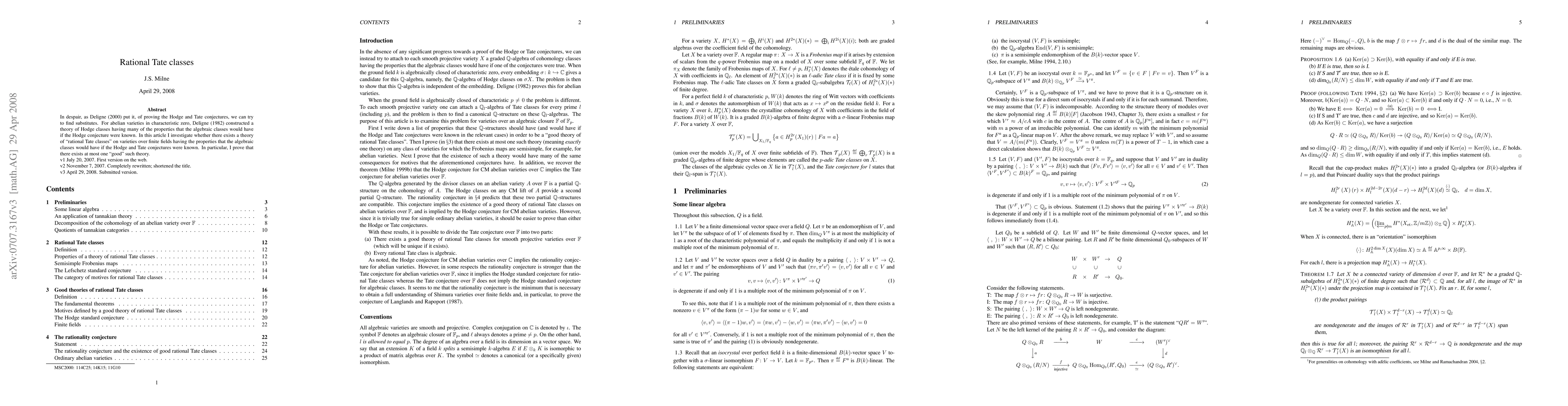 This paper explores the possibility of constructing a theory of "rational Tate classes" on varieties over finite fields, aiming to mimic the properties of algebraic classes that would exist if the Hodge and Tate conjectures were proven. The study builds on Deligne's earlier work on Hodge classes for abelian varieties in characteristic zero.