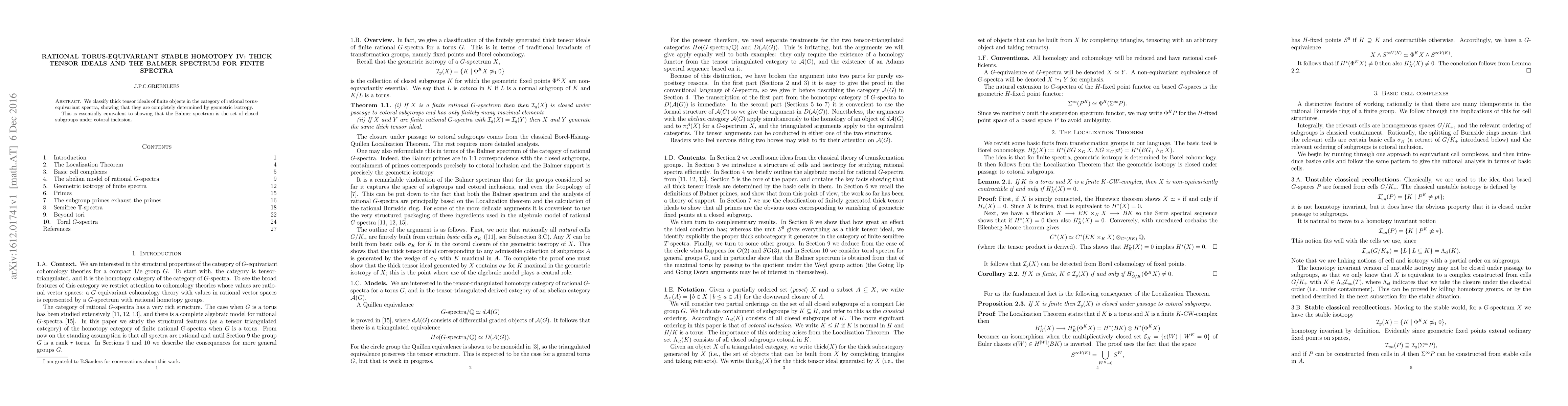 This paper classifies thick tensor ideals in the category of rational torus-equivariant spectra, demonstrating they are determined by geometric isotropy. It shows the Balmer spectrum corresponds to the set of closed subgroups under cotoral inclusion, with analogous results for toral spectra for general groups.