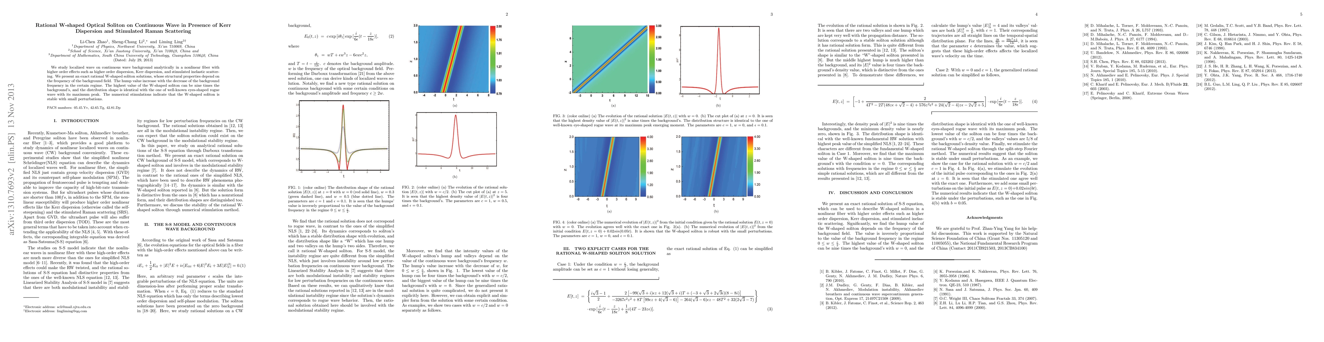 We study localized wave on continuous wave background analytically in a nonlinear fiber with higher order effects such as higher order dispersion, Kerr dispersion, and stimulated inelastic scattering. We present an exact rational W-shaped soliton solutions, whose structural properties depend on the frequency of the background field. The hump value increase with the decrease of the background frequency in the certain regime. The highest value of the W-shaped soliton can be nine times the background's, and the distribution shape is identical with the one of well-known eyes-shaped rogue wave with its maximum peak. The numerical stimulations indicate that the W-shaped soliton is stable with small perturbations.