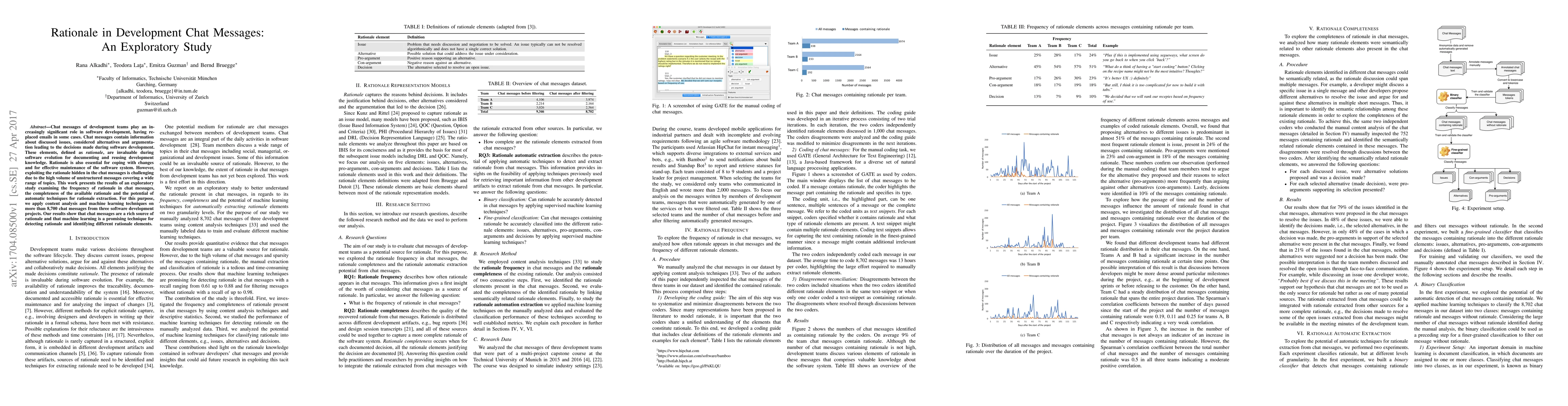 This study explores the presence and completeness of rationale in chat messages from software development teams, finding they are a valuable source of development knowledge. The research also demonstrates that machine learning techniques show promise in extracting rationale from these unstructured messages.