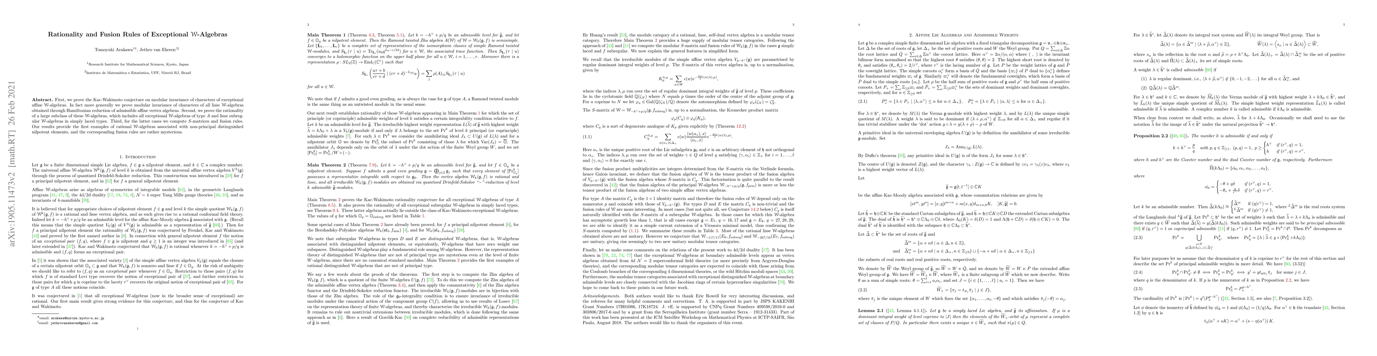 The paper proves the Kac-Wakimoto conjecture on modular invariance for characters of exceptional affine W-algebras and extends this to all lisse W-algebras. It also establishes the rationality of a subclass of these W-algebras, including exceptional type A and subregular cases, and computes their S-matrices and fusion rules.