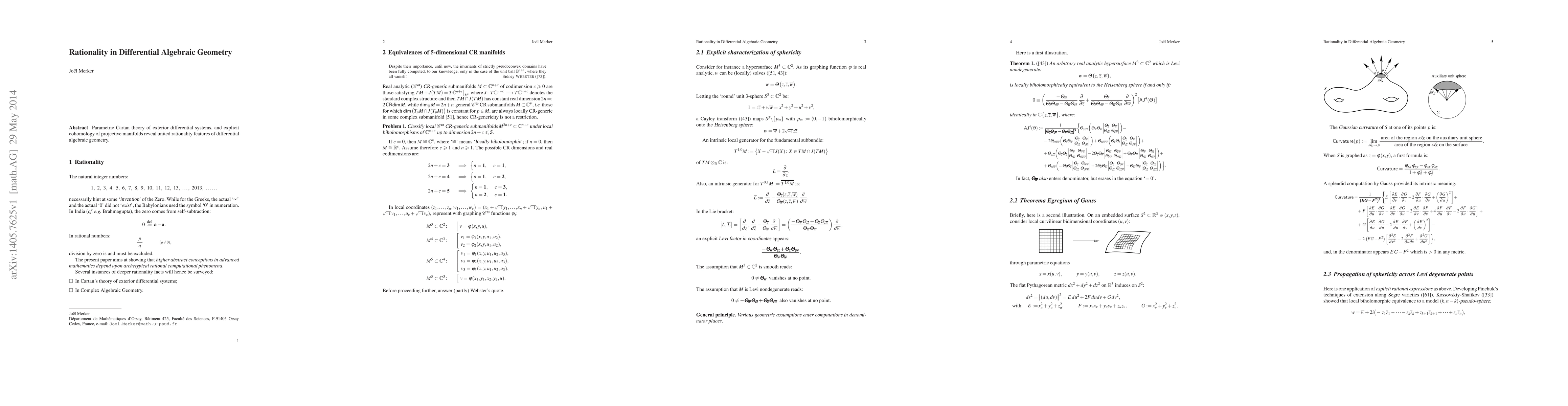 Parametric Cartan theory of exterior differential systems, and explicit cohomology of projective manifolds reveal united rationality features of differential algebraic geometry.