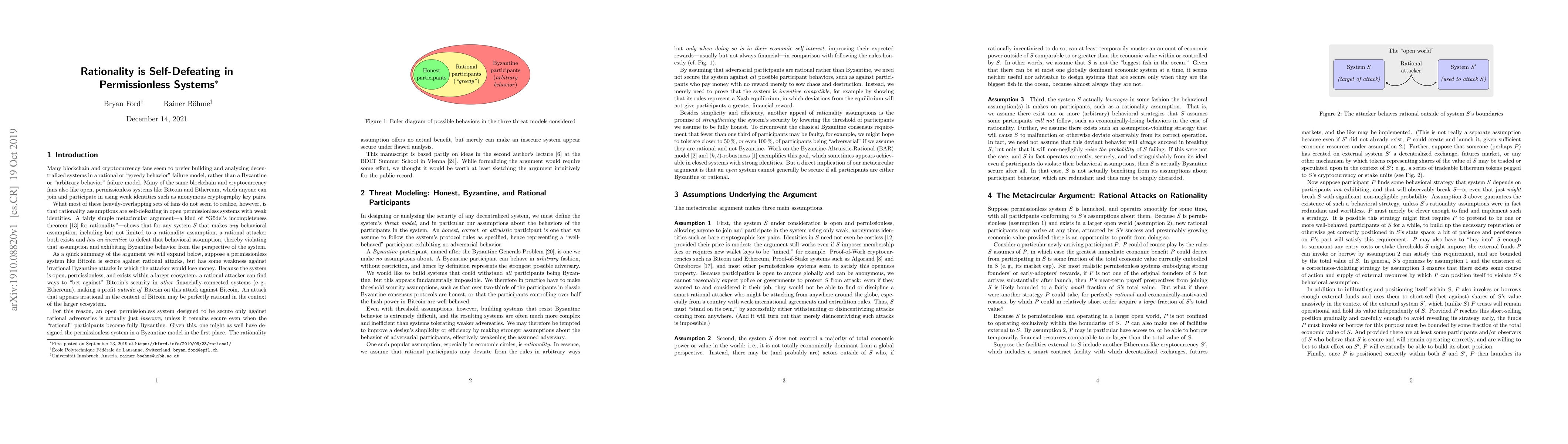 Researchers argue that permissionless systems can't rely on rationality assumptions to secure them, as rational thinking can lead to paradoxes, making the system insecure. This challenges traditional notions of security in decentralized systems.