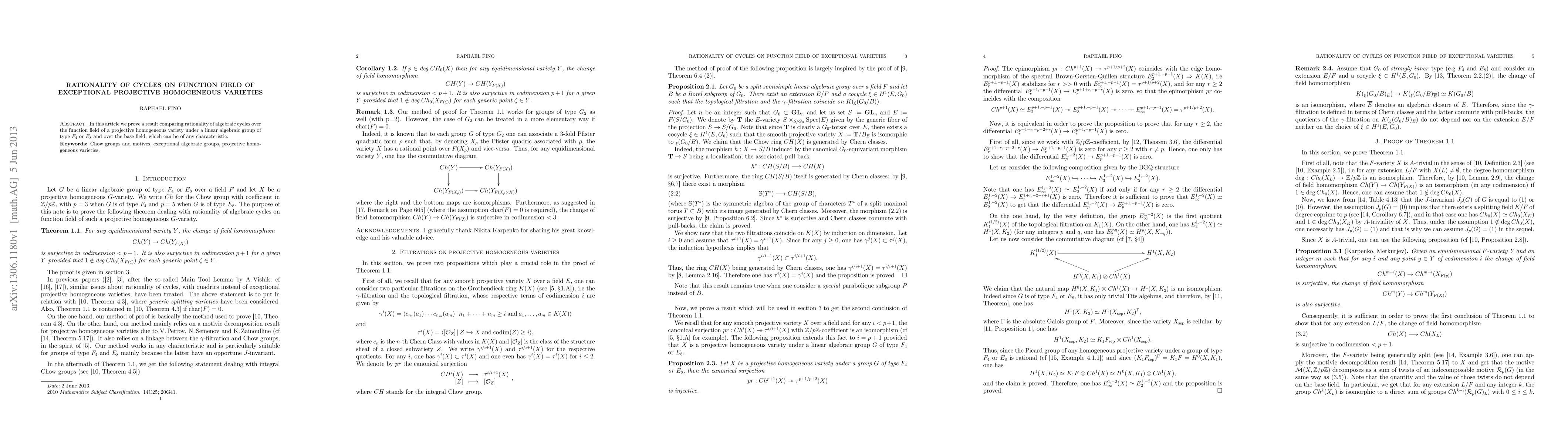 In this article we prove a result comparing rationality of algebraic cycles over the function field of a projective homogeneous variety under a linear algebraic group of type $F_4$ or $E_8$ and over the base field, which can be of any characteristic.