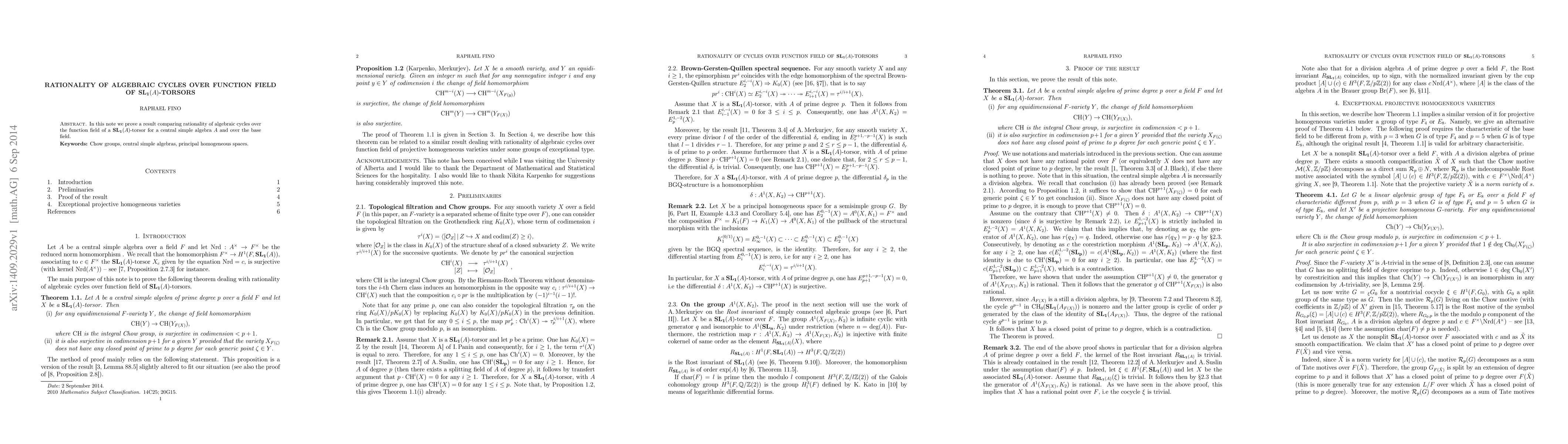 In this note we prove a result comparing rationality of algebraic cycles over the function field of a $SL_1(A)$-torsor for a central simple algebra $A$ and over the base field.