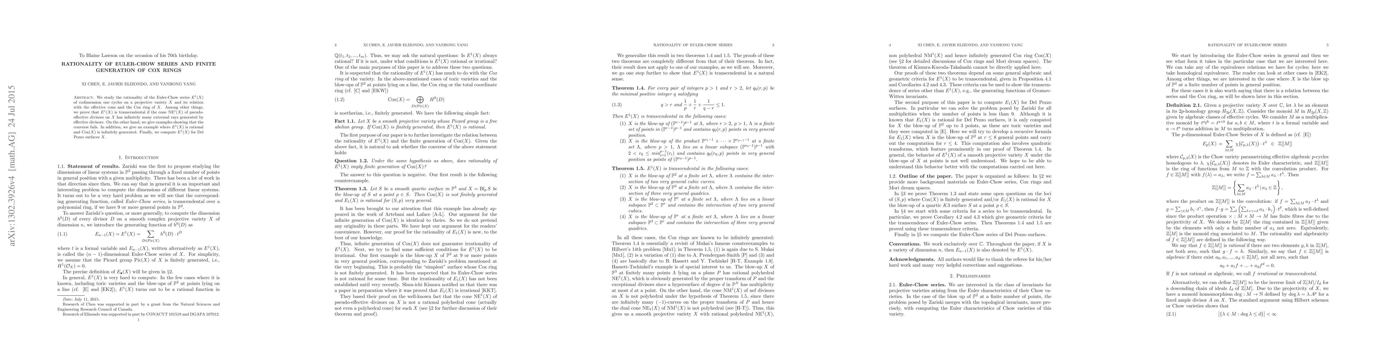 This paper investigates the rationality of Euler-Chow series linked to projective varieties and explores the finite generation of Cox rings. It demonstrates that the Cox ring being Noetherian ensures rationality but presents examples where the converse does not hold, particularly for varieties with infinitely generated Cox rings.