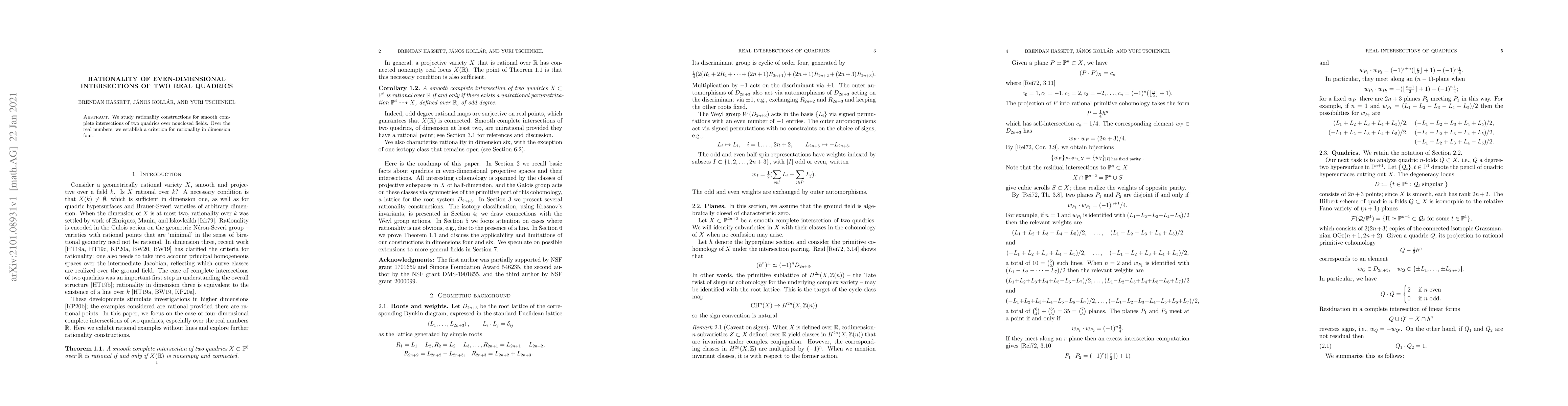 This paper investigates the rationality of smooth complete intersections formed by two quadrics over nonclosed fields, specifically establishing a criterion for determining rationality when the intersection dimension is four over the real numbers.