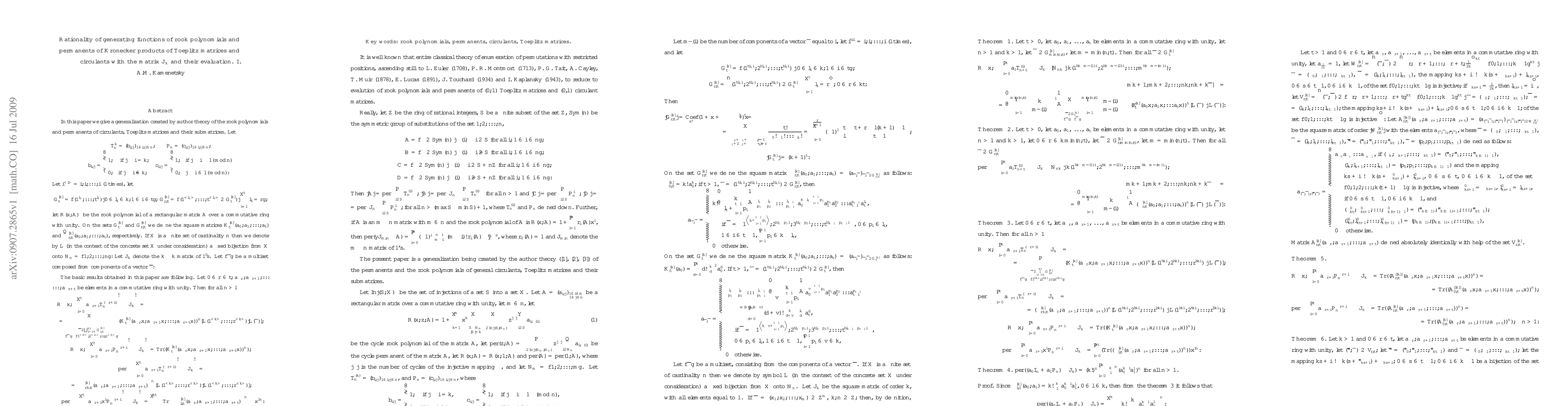 In this paper we give a generalization created by the author of the theory of rook polynomials and permanents of circulants, Toeplits matrices and their submatrices.