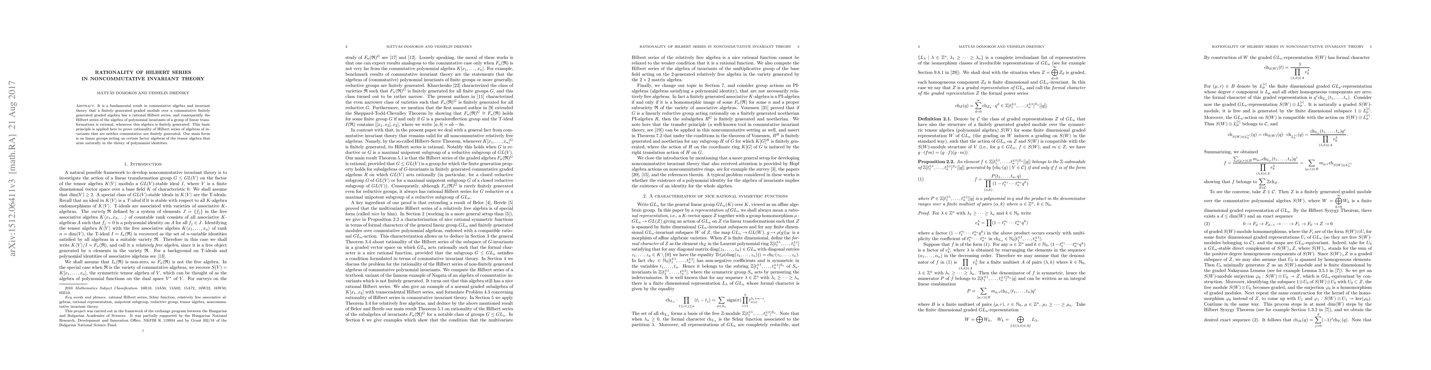 It is a fundamental result in commutative algebra and invariant theory that a finitely generated graded module over a commutative finitely generated graded algebra has rational Hilbert series, and consequently the Hilbert series of the algebra of polynomial invariants of a group of linear transformations is rational, whenever this algebra is finitely generated. This basic principle is applied here to prove rationality of Hilbert series of algebras of invariants that are neither commutative nor finitely generated. Our main focus is on linear groups acting on certain factor algebras of the tensor algebra that arise naturally in the theory of polynomial identities.