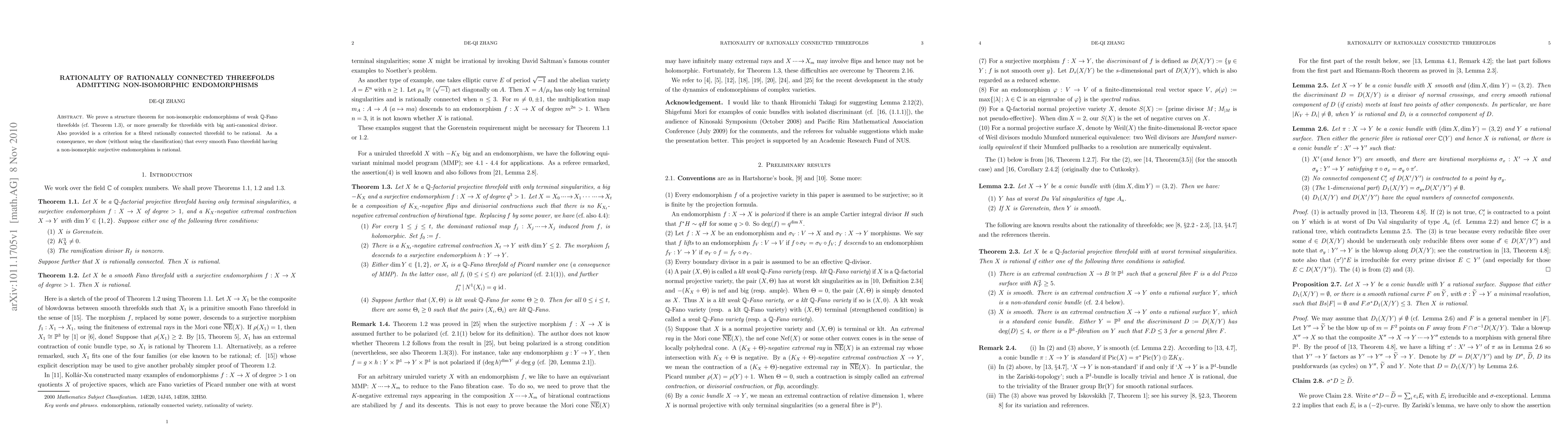 This paper establishes a structure theorem for rationally connected threefolds with non-isomorphic endomorphisms, proving that such threefolds are rational. It also provides a criterion for determining rationality in fibred rationally connected threefolds.