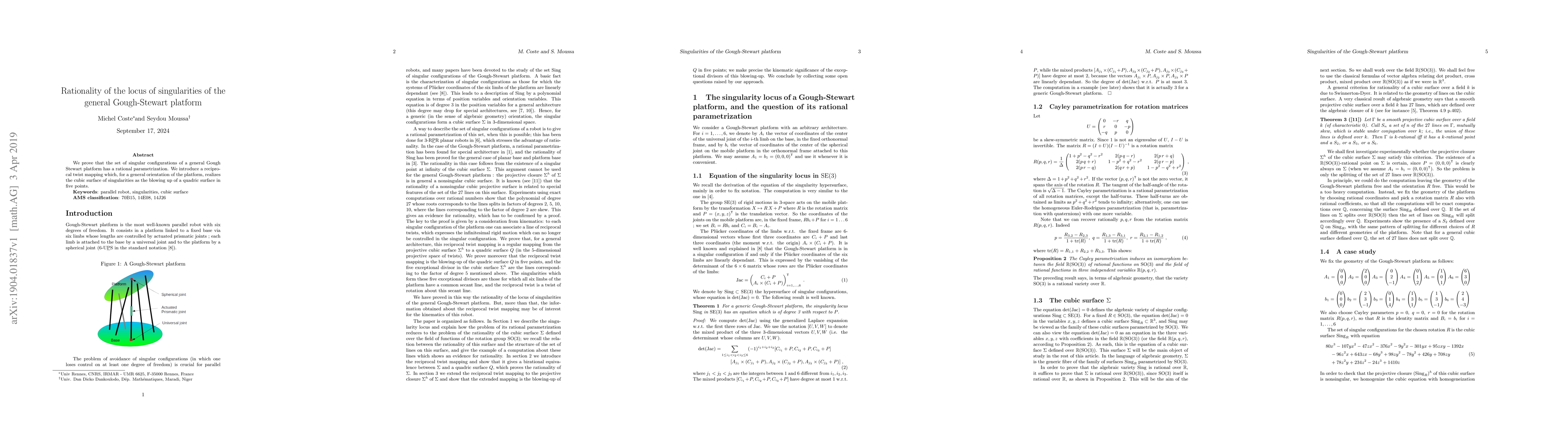We prove that the set of singular configurations of a general Gough Stewart platform has a rational parametrization. We introduce a reciprocal twist mapping which, for a general orientation of the platform, realizes the cubic surface of singularities as the blowing up of a quadric surface in five points.
