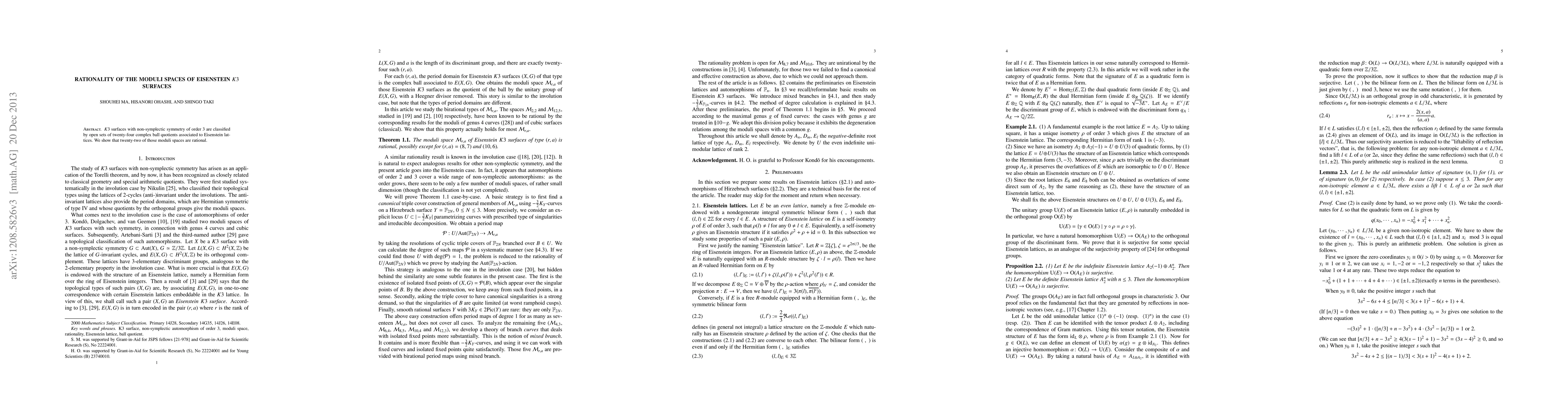 Summary: This paper classifies K3 surfaces with order 3 non-symplectic symmetries using Eisenstein lattices and demonstrates that twenty-two out of the twenty-four associated moduli spaces are rational.