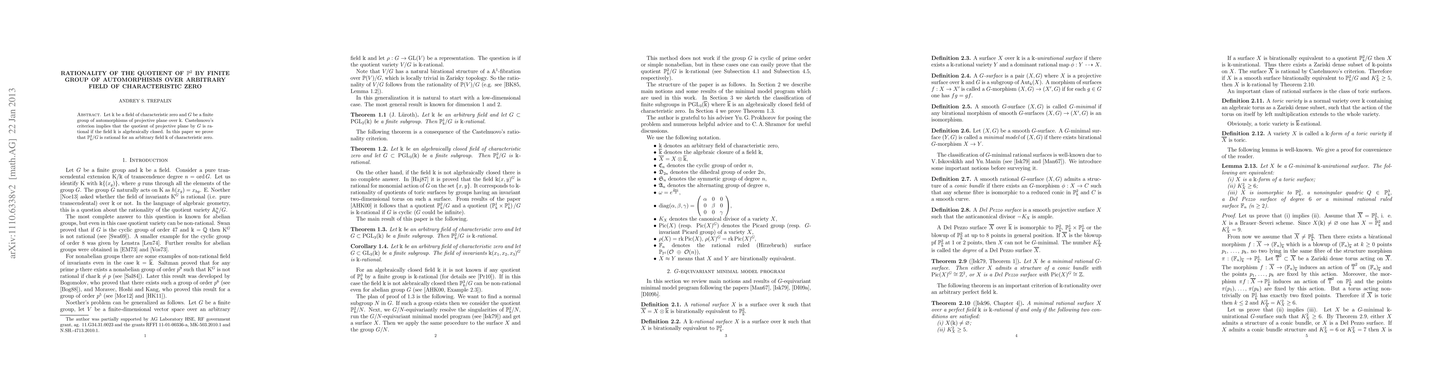 Let $\Bbbk$ be a field of characteristic zero and $G$ be a finite group of automorphisms of projective plane over $\Bbbk$. Castelnuovo's criterion implies that the quotient of projective plane by $G$ is rational if the field $\Bbbk$ is algebraically closed. In this paper we prove that $\mathbb{P}^2_{\Bbbk} / G$ is rational for an arbitrary field $\Bbbk$ of characteristic zero.