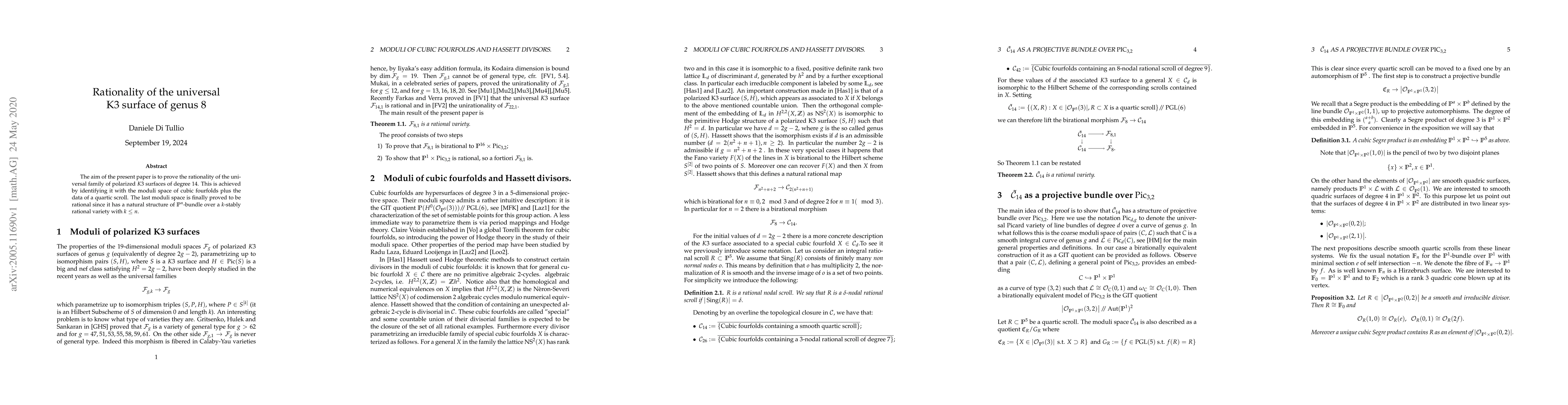 Summary: The paper proves the rationality of the universal family of polarized K3 surfaces of degree 14 by linking it to the moduli space of cubic fourfolds and a quartic scroll, demonstrating that the latter is $k$-stably rational with $k \leq n$.