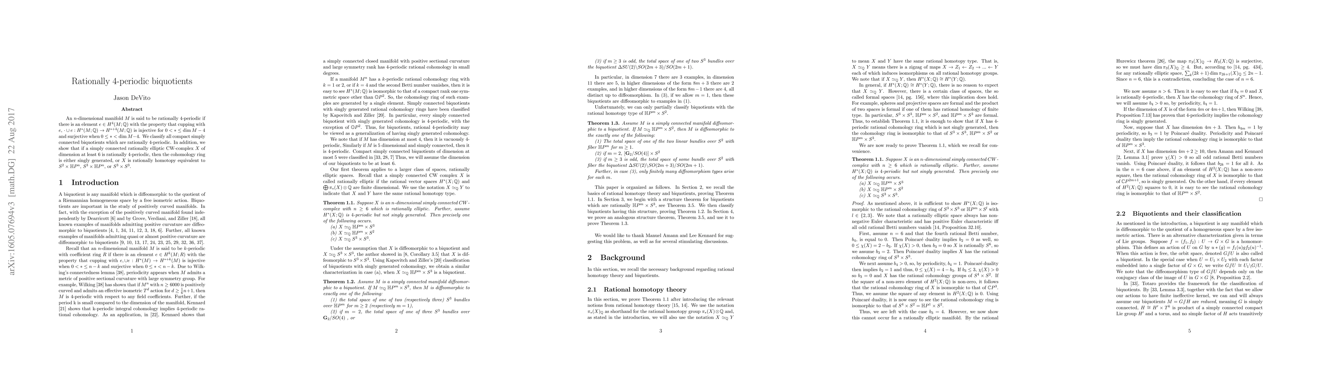 This paper classifies compact simply connected biquotients that are rationally 4-periodic, showing they are either singly generated or rationally homotopy equivalent to specific spaces like $S^2 imes b HP^n$, $S^3 imes b HP^n$, or $S^3 imes S^3$.