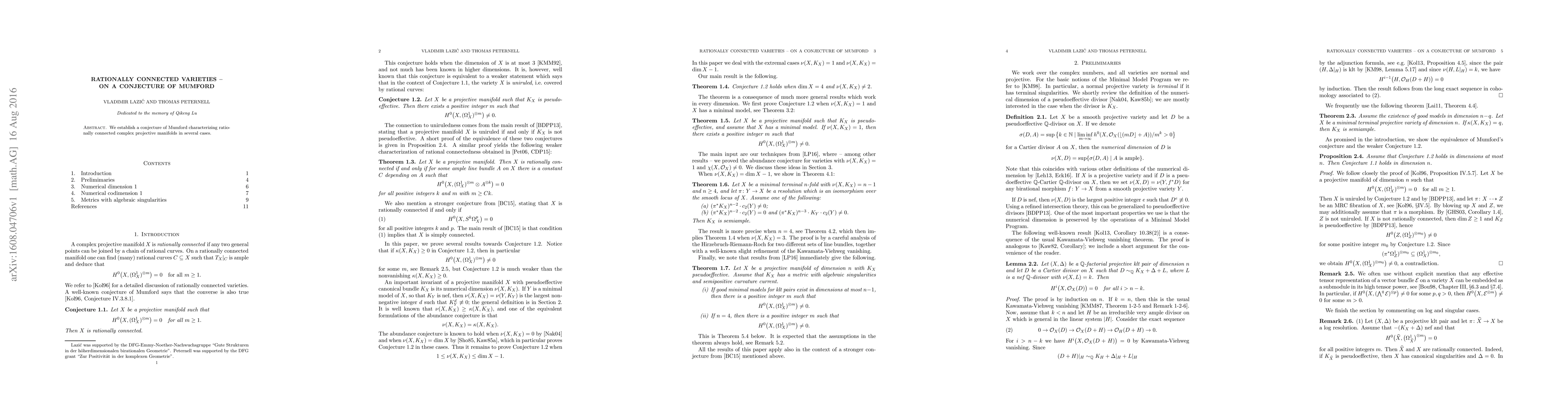 We establish a conjecture of Mumford characterizing rationally connected complex projective manifolds in several cases.