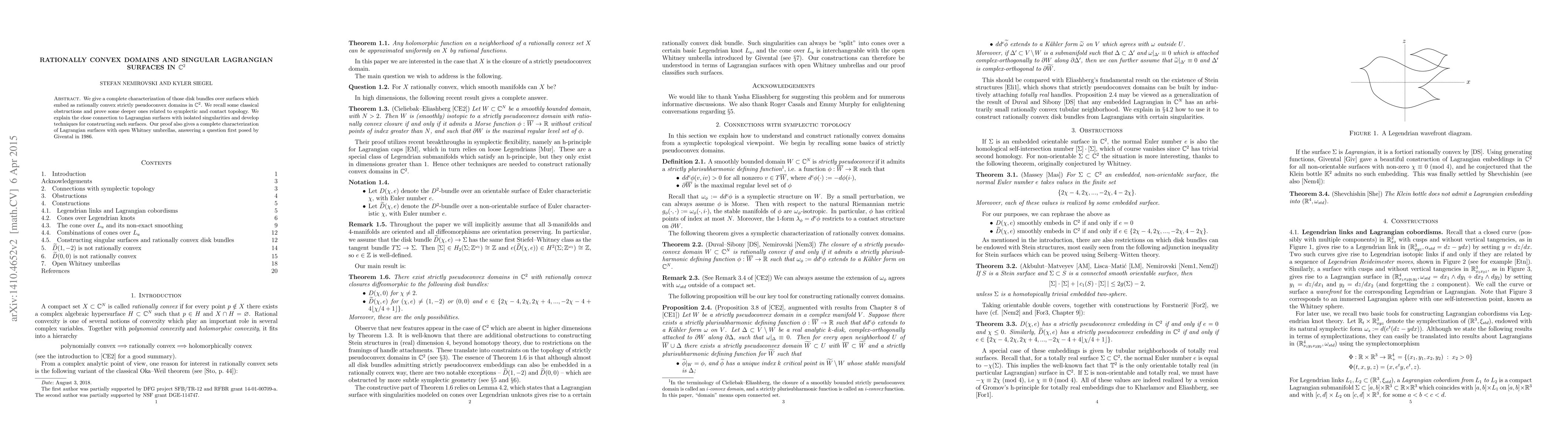 We give a complete characterization of those disk bundles over surfaces which embed as rationally convex strictly pseudoconvex domains in $\mathbb{C}^2$. We recall some classical obstructions and prove some deeper ones related to symplectic and contact topology. We explain the close connection to Lagrangian surfaces with isolated singularities and develop techniques for constructing such surfaces. Our proof also gives a complete characterization of Lagrangian surfaces with open Whitney umbrellas, answering a question first posed by Givental in 1986.