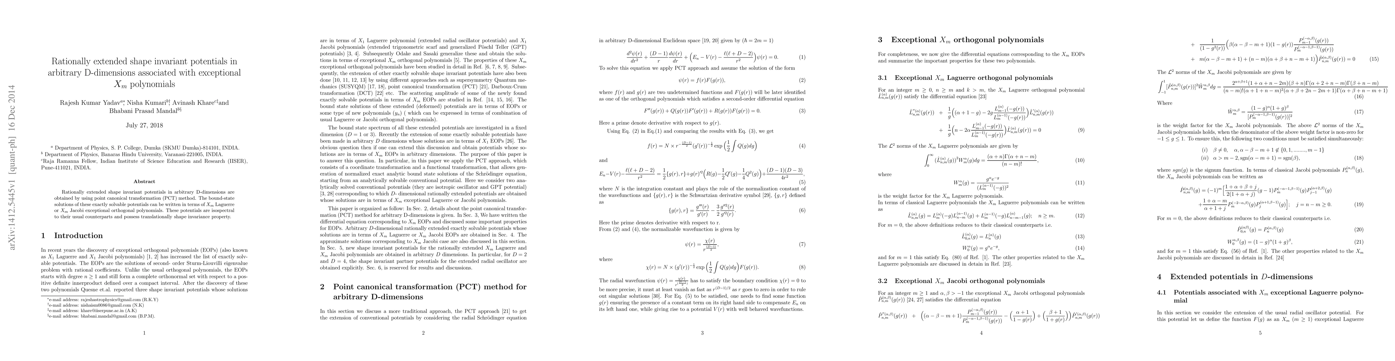The paper presents a systematic method for generating rationally extended shape invariant potentials in D-dimensions using PCT and exceptional polynomials, providing exact solutions and their wavefunctions.