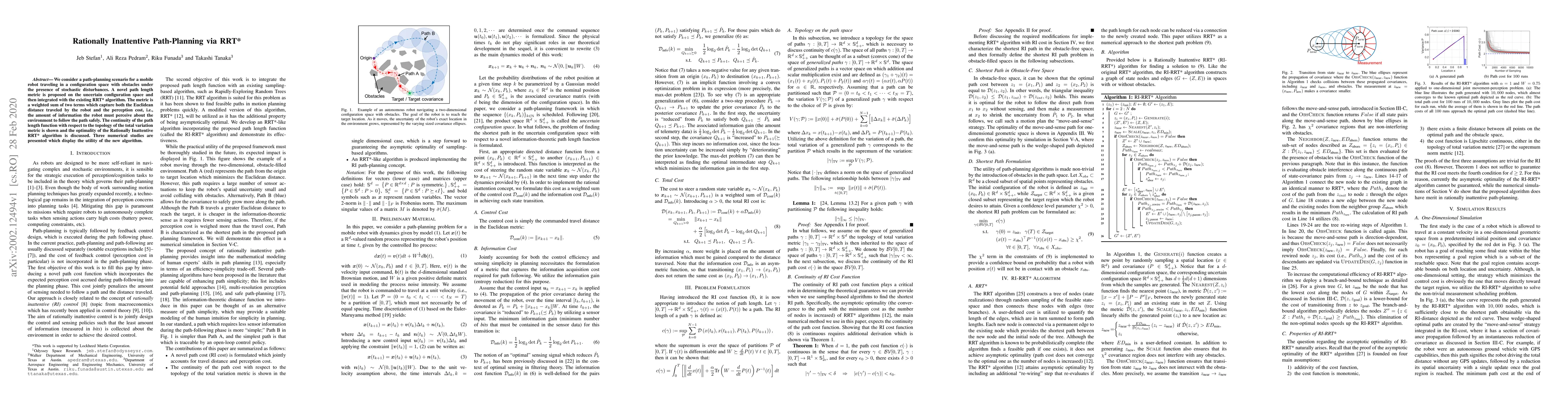 We consider a path-planning scenario for a mobile robot traveling in a configuration space with obstacles under the presence of stochastic disturbances. A novel path length metric is proposed on the uncertain configuration space and then integrated with the existing RRT* algorithm. The metric is a weighted sum of two terms which capture both the Euclidean distance traveled by the robot and the perception cost, i.e., the amount of information the robot must perceive about the environment to follow the path safely. The continuity of the path length function with respect to the topology of the total variation metric is shown and the optimality of the Rationally Inattentive RRT* algorithm is discussed. Three numerical studies are presented which display the utility of the new algorithm.